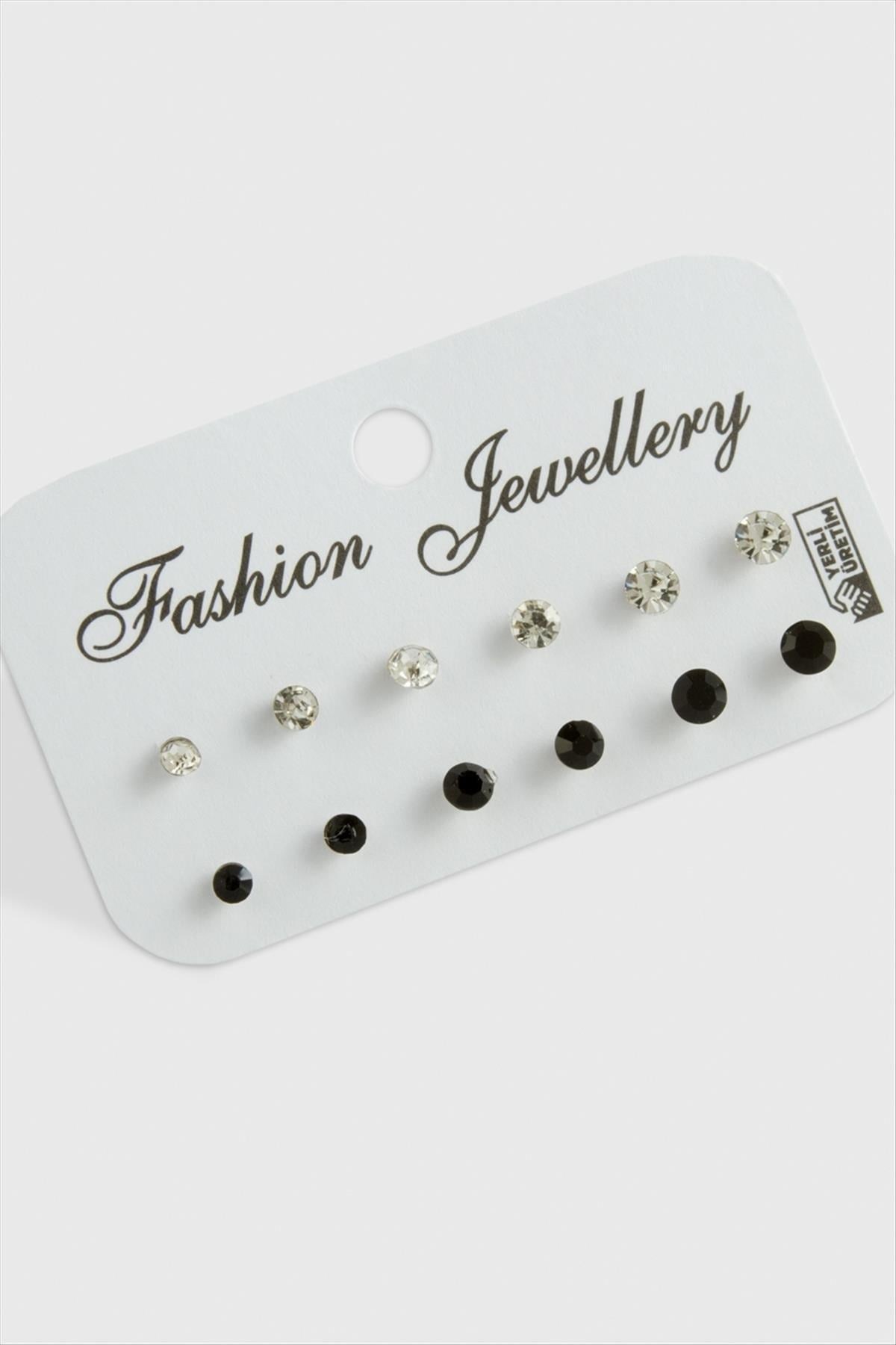 Küpe; Ürün malzemesi taş ve metaldir. Küpe boyları yaklaşık 0,4-0,5-0,6 cmdir. Kartıyla beraber gönderilecektir. 1 kartta 12 adet olarak satılacaktır.