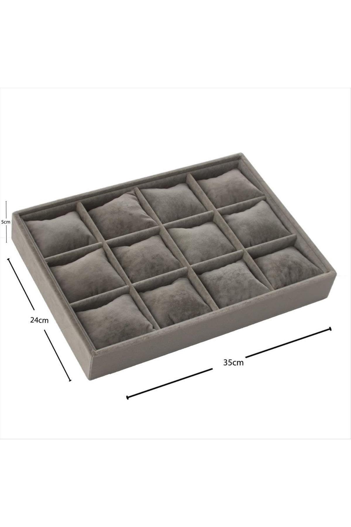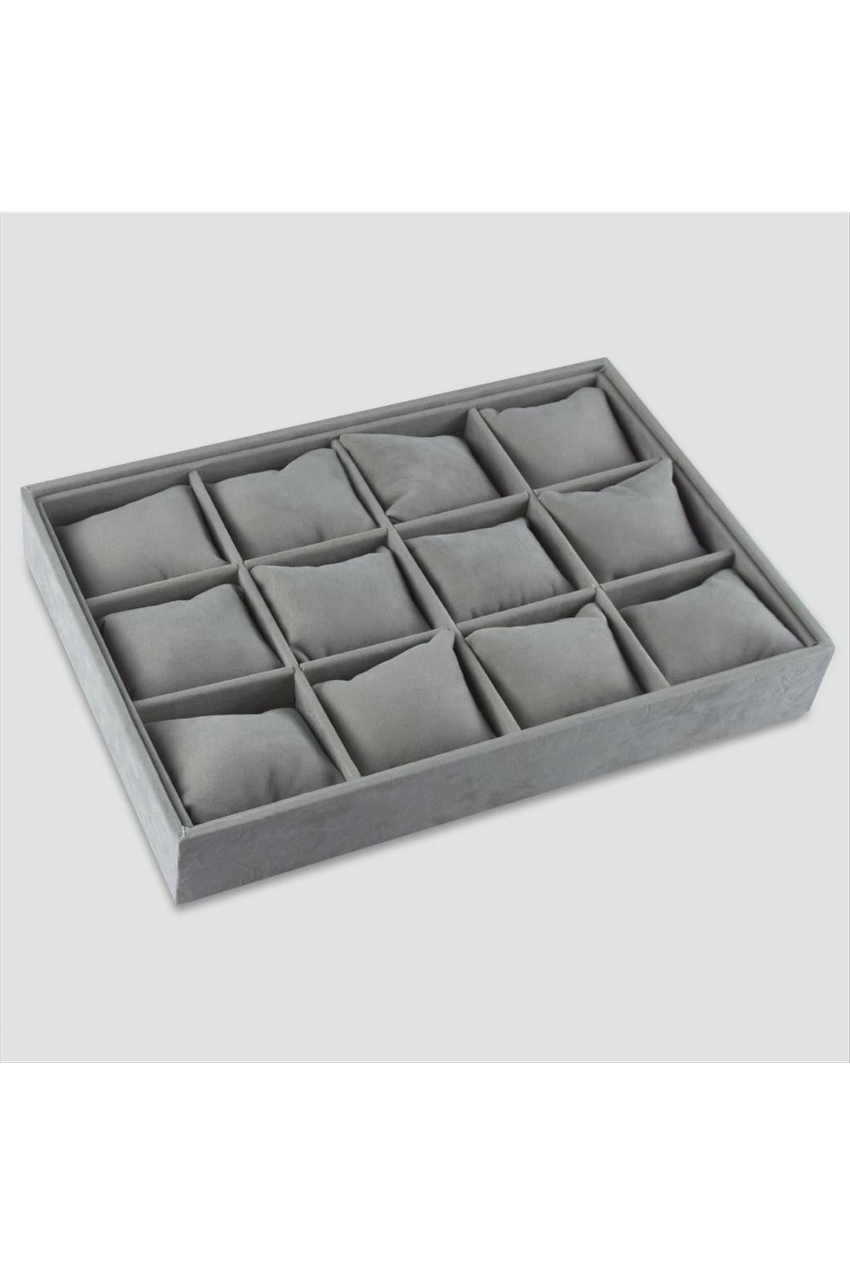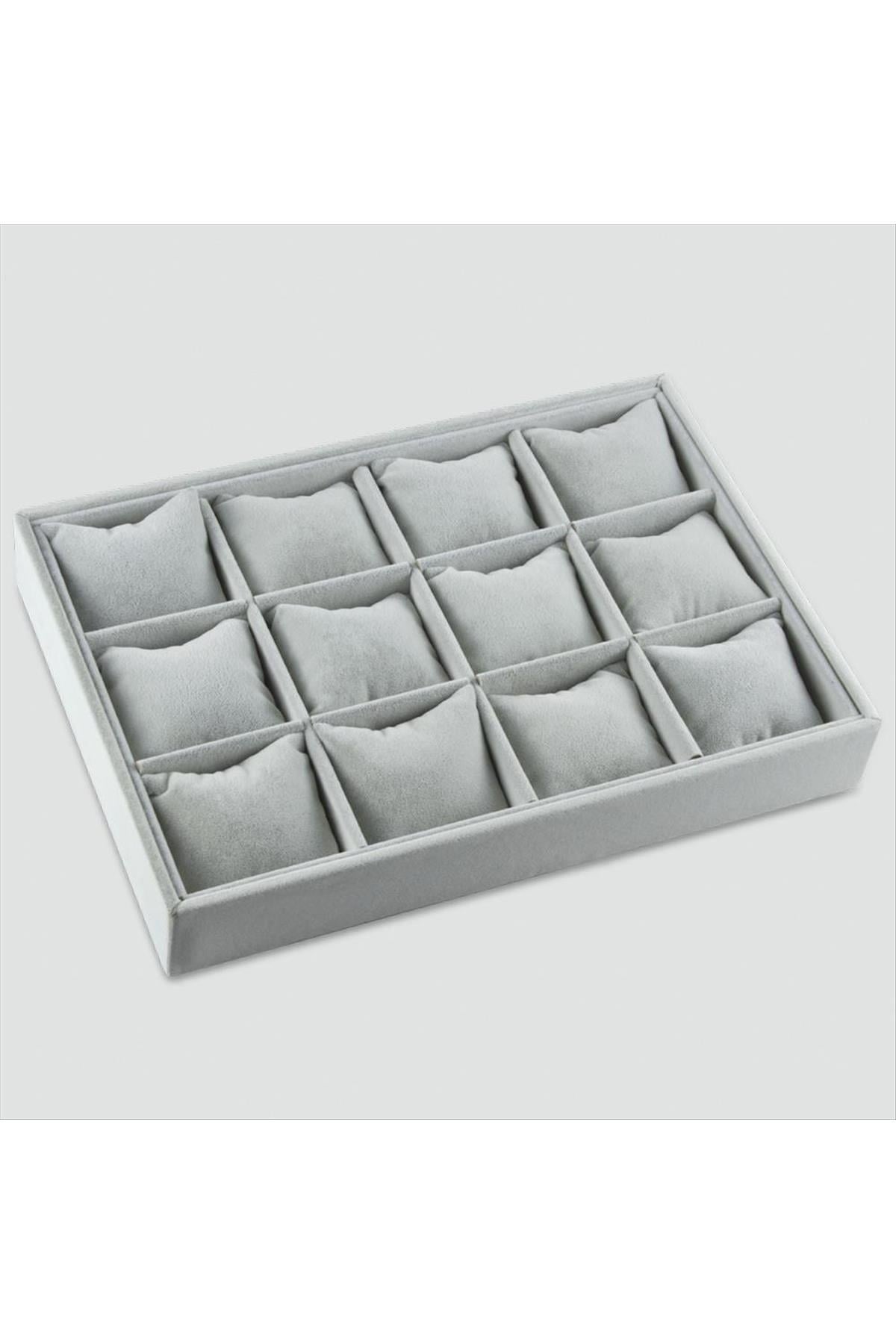 Saat ve bileklik gibi ürünlerin teşhiri için kullanılır. Malzemesi birinci kalite Anfora kumaşdır. 12 yastıklıdır. Açık gri rengine kaydedilen ürün 511 kodlu orjinal ithal gri renktir. Ürün boyu 34*24 cmdir. Ürün derinliği 5 cmdir.
