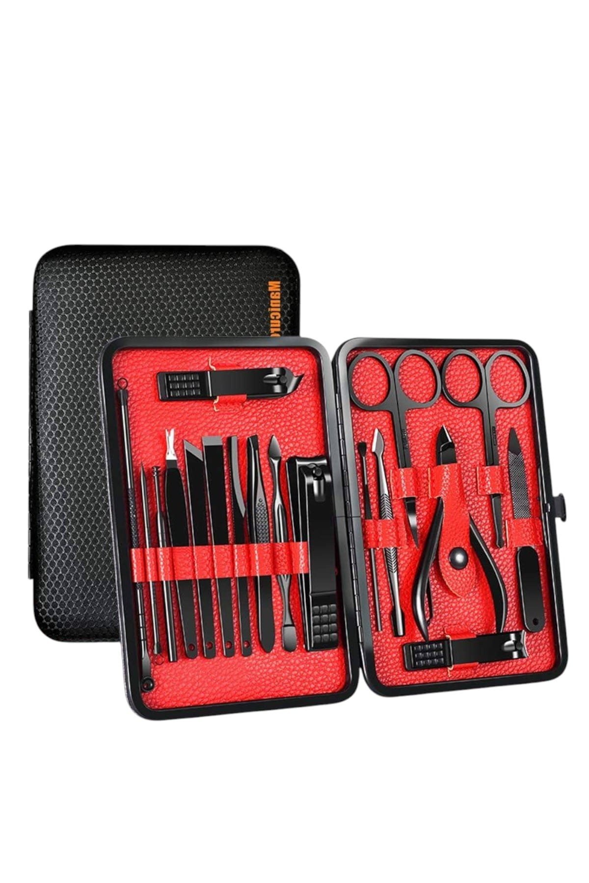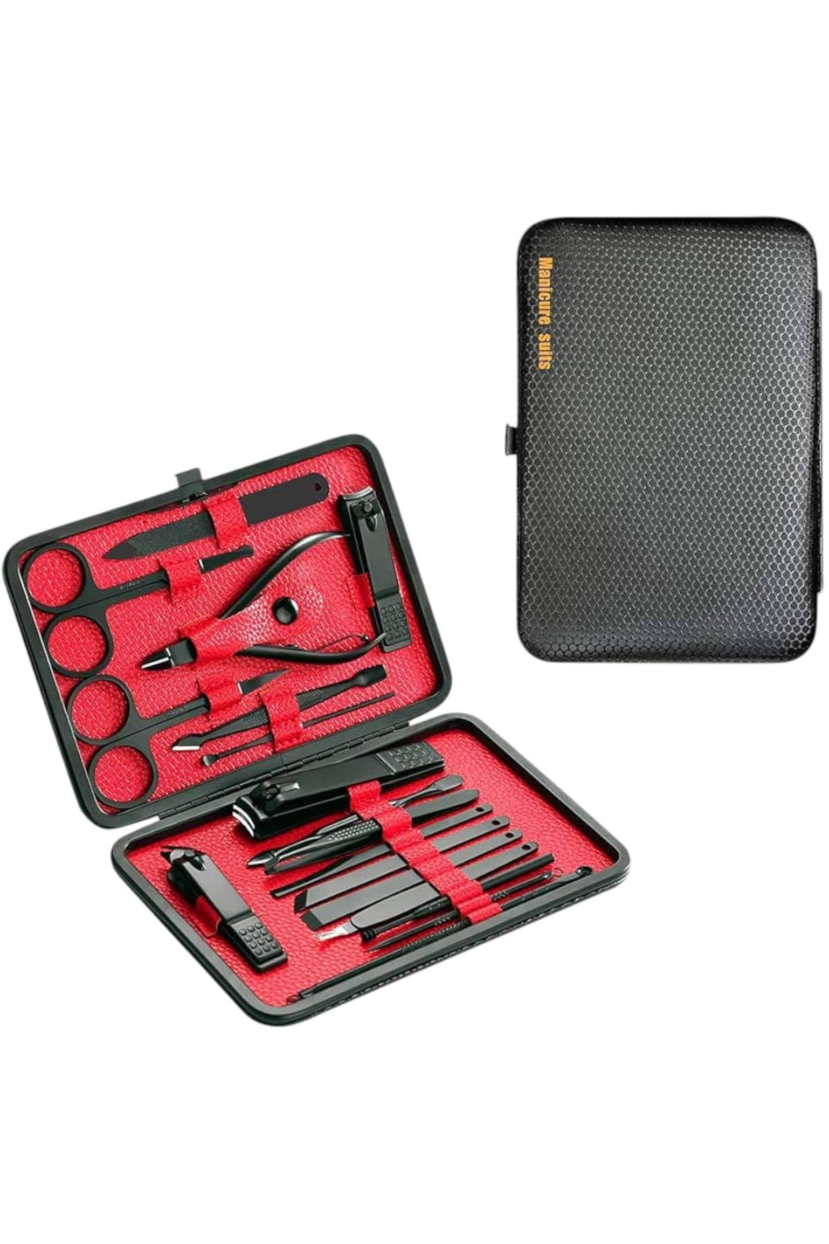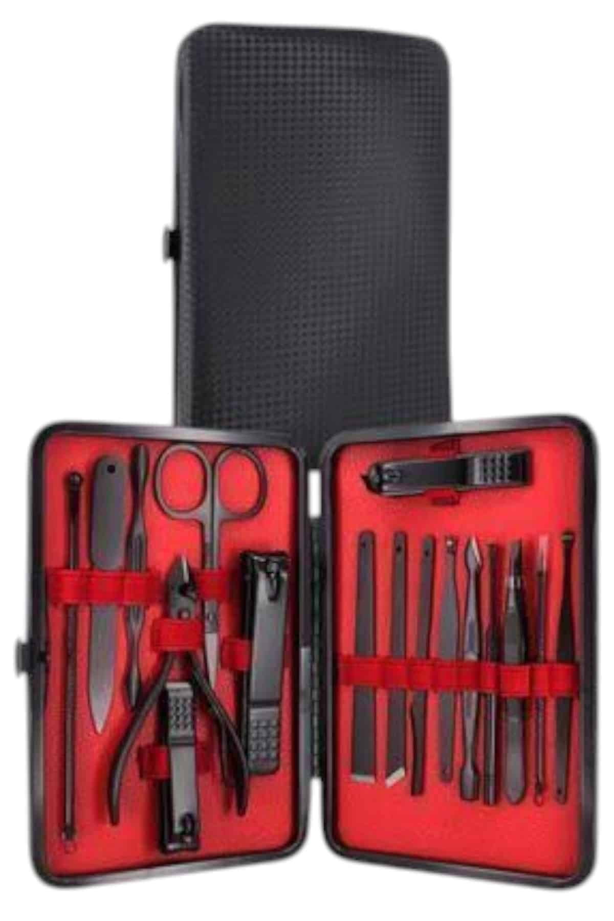 Özel tasarımıyla dikkat çeken bu 17 parçalık manikür seti, el ve ayak bakımınızı profesyonelce yapmanız için tüm gerekli malzemeleri bir araya getiriyor. Paslanmaz çelikten üretilmiş dayanıklı ve uzun ömürlü parçaları sayesinde güvenli sterilizasyon sağlar, kolay temizlenir ve korozyonu önleyerek hijyenik bir kullanım sunar. Yeni nesil siyah kaymaz parlatma teknolojisi ile üretilmiş keskin ve ergonomik tasarımı, kullanım kolaylığı ve estetik görünümü bir araya getirir. Şık ve sağlam deri kaplama kutusu sayesinde düzenli bir şekilde saklanabilir ve tek düğmeyle kolayca açılıp kapanabilir. Hafif ve taşınabilir yapısıyla çantanızda rahatça taşıyabilir, günlük kullanım veya seyahatlerinizde yanınızda bulundurabilirsiniz. Setin içeriğinde büyük, küçük ve sivri uçlu tırnak makasları, çift uçlu komedon, törpü, et ittirici, çift taraflı tırnak kaldırma aleti, makas, pedikür bıçakları, V şeklinde et itme aparatı, tırnak temizleme çubuğu, cımbız, iğneli komedon ve kulak temizleme aparatı bulunmaktadır. Her detayı düşünülerek tasarlanmış bu manikür seti, hem kendi bakımınızı pratik şekilde yapmanızı sağlar hem de sevdiklerinize hediye edebileceğiniz şık ve kullanışlı bir alternatif sunar.