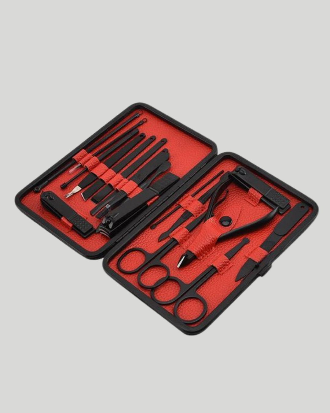 Profesyonel kişisel bakım deneyimini evinizin rahatlığında yaşamanız için tasarlanan 17 parçalık manikür pedikür seti, kapsamlı içeriği ile el ve ayak bakımınızı zahmetsizce yapmanıza yardımcı olur. Paslanmaz çelikten üretilen parçalar, uzun ömürlü kullanımın yanı sıra hijyenik bir deneyim sunar. Kolay temizlenebilir yapısı sayesinde her zaman steril kullanım sağlar ve korozyona karşı dayanıklıdır. Setin içerisinde büyük, küçük ve sivri uçlu tırnak makasları, törpü, cımbız, pedikür bıçakları, tırnak kaldırma aparatı, kulak temizleme aparatı ve daha birçok aparat bulunur. Bu kapsamlı içerik, hem tırnak hem de cilt bakımınızı kolayca yapmanızı sağlar. Şık siyah deri kutusu, kırmızı iç tasarımı ile estetik bir görünüm sunarken tek tuşla açılarak pratik kullanım imkânı verir. Hafif ve kompakt yapısıyla çantanızda taşıyabilir, seyahatlerinizde yanınızda bulundurabilirsiniz. Günlük kullanım için ideal olan bu set, aynı zamanda özenli tasarımıyla sevdiklerinize hediye etmek için de harika bir tercihtir.