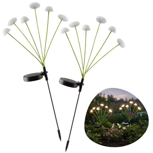 2 Adet Plastik Mantar Sensörlü Solar Bahçe Lambası
