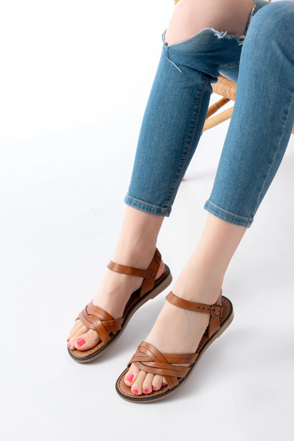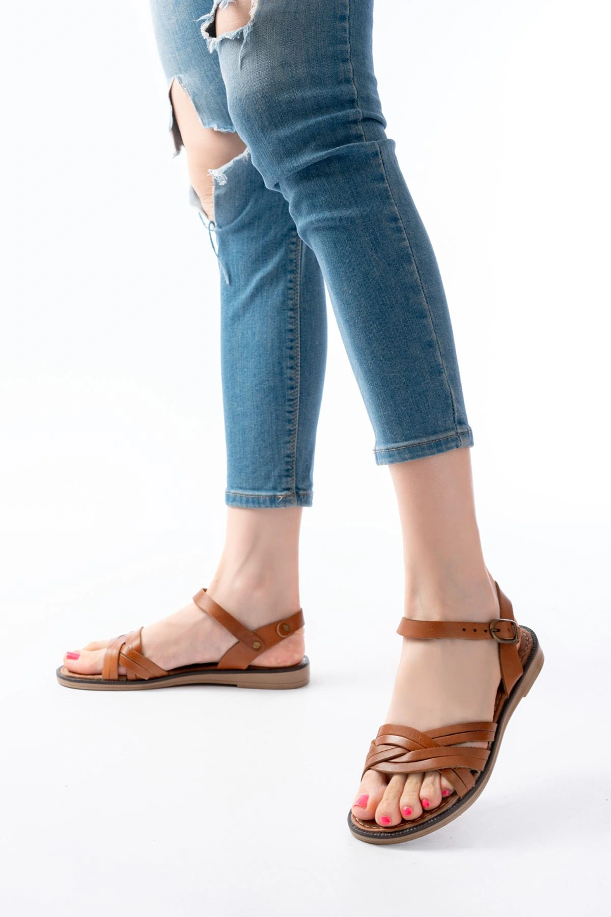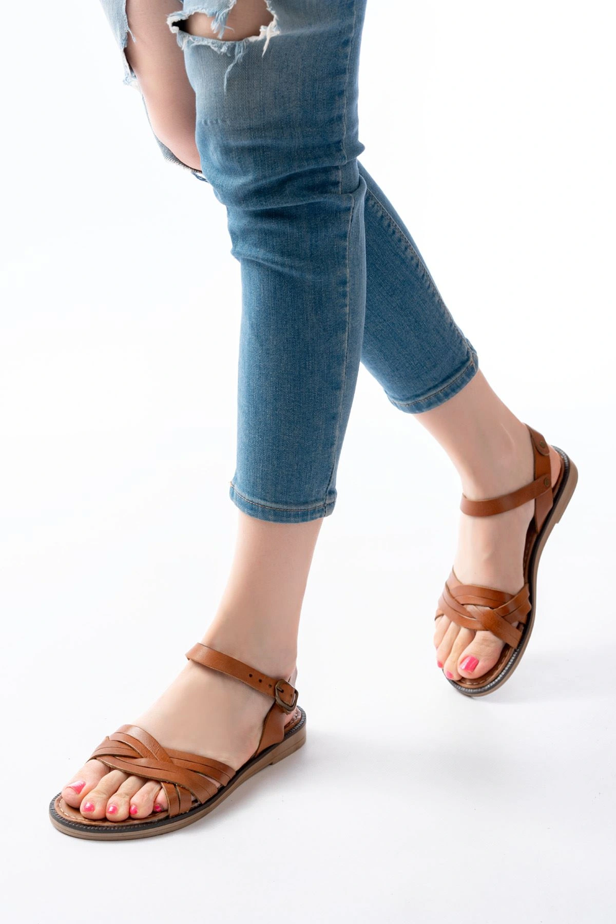 205-037 Taba Hakiki Deri Ortopedik Taban Kadın Sandalet