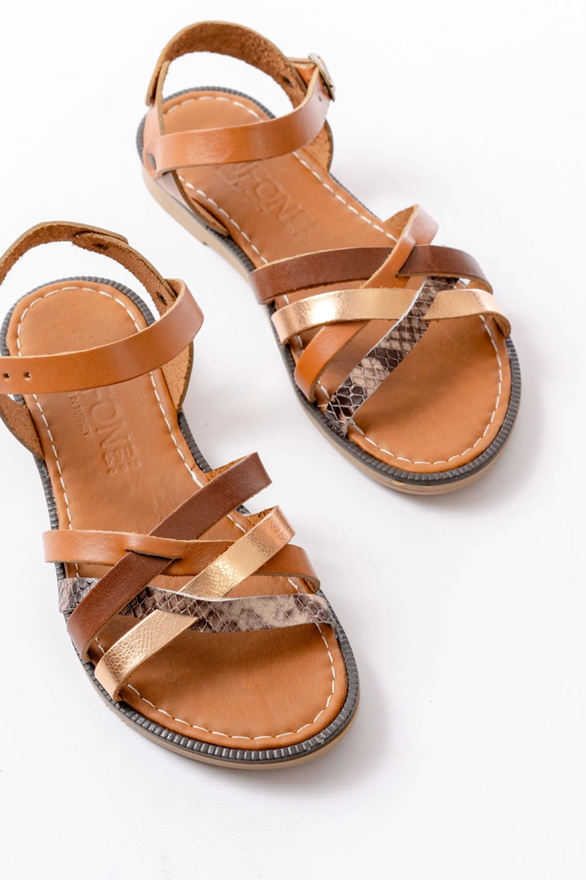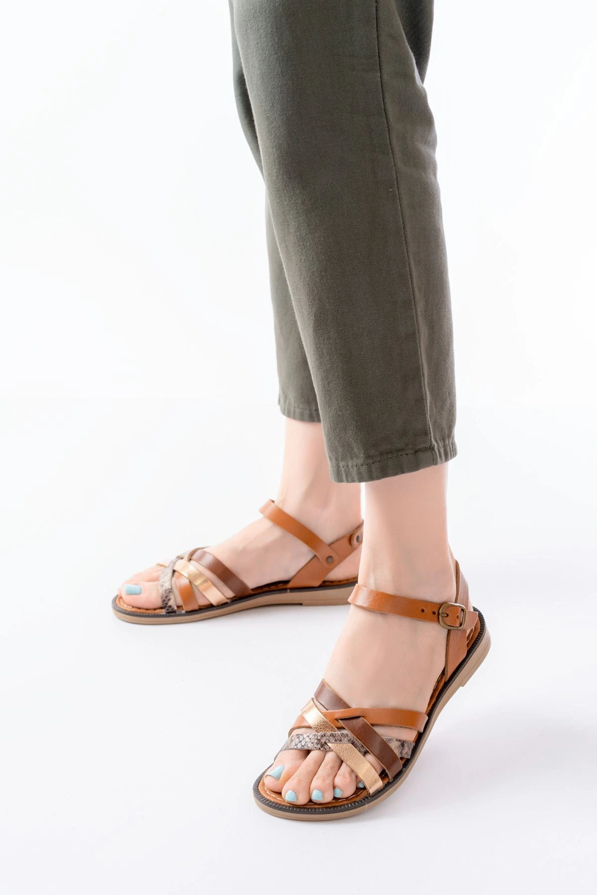 205-093 Taba Garni Hakiki Deri Ortopedik Taban Kadın Sandalet
