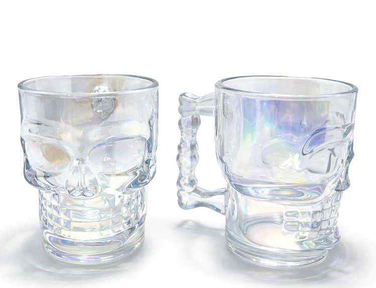 2'li Şeffaf Cam Kurukafa Kupa Bardak Seti