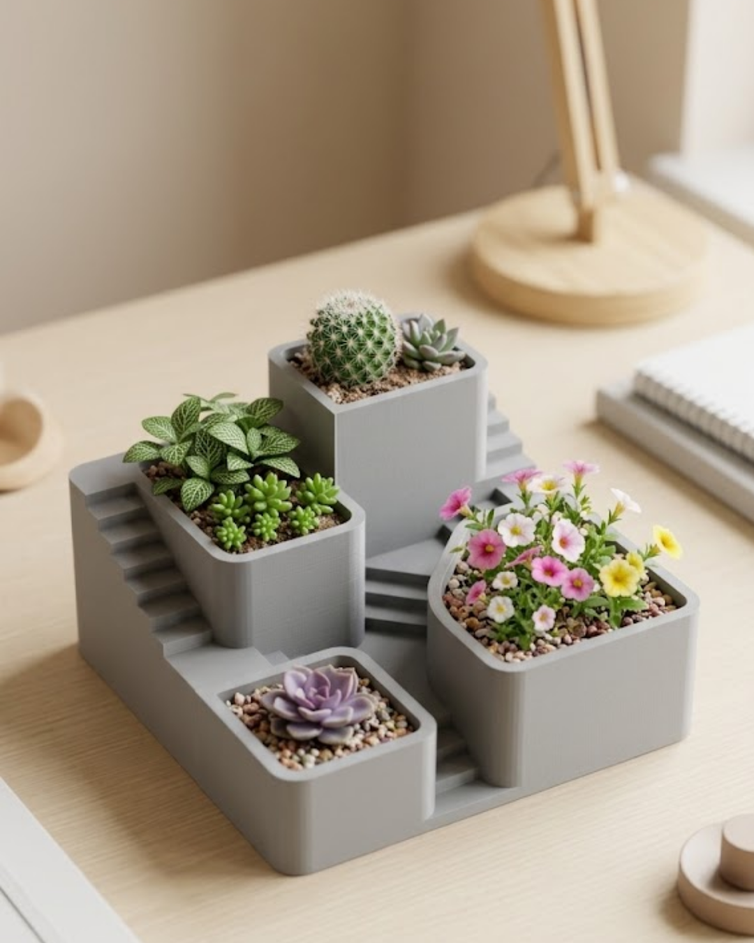 3D Baskı Sukulent ve Kaktüs Saksı Seti Çok Katlı Tasarım Şık Ev Ofis Dekoru