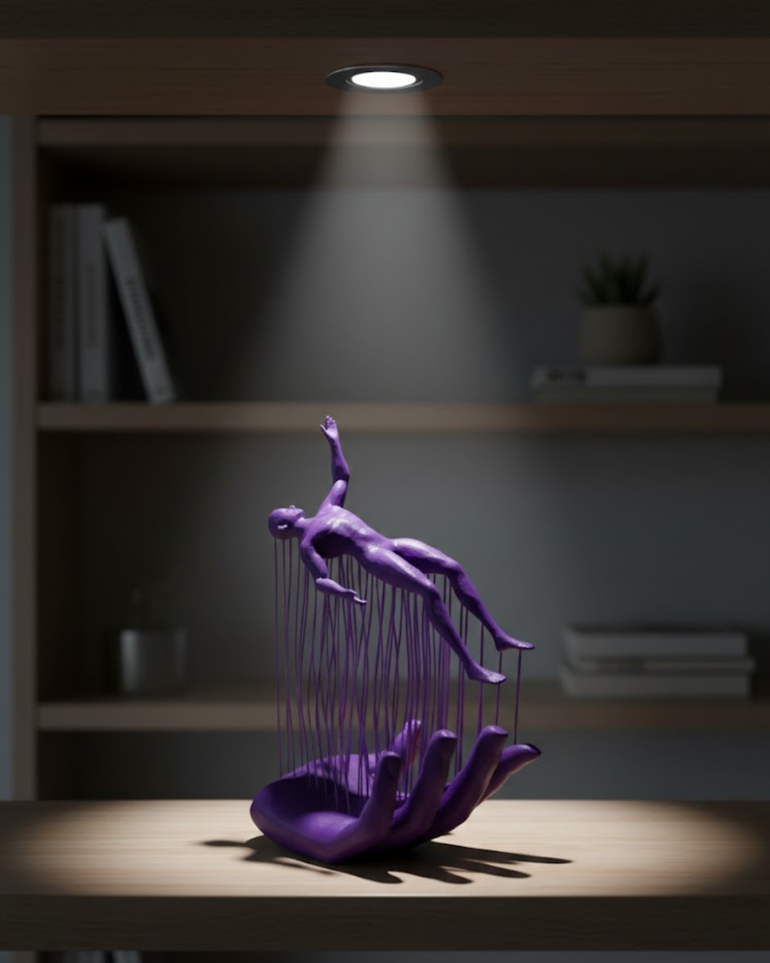 3D El Üzerinde İnsan Figürü Mor Soyut Tasarım Dekor Biblo