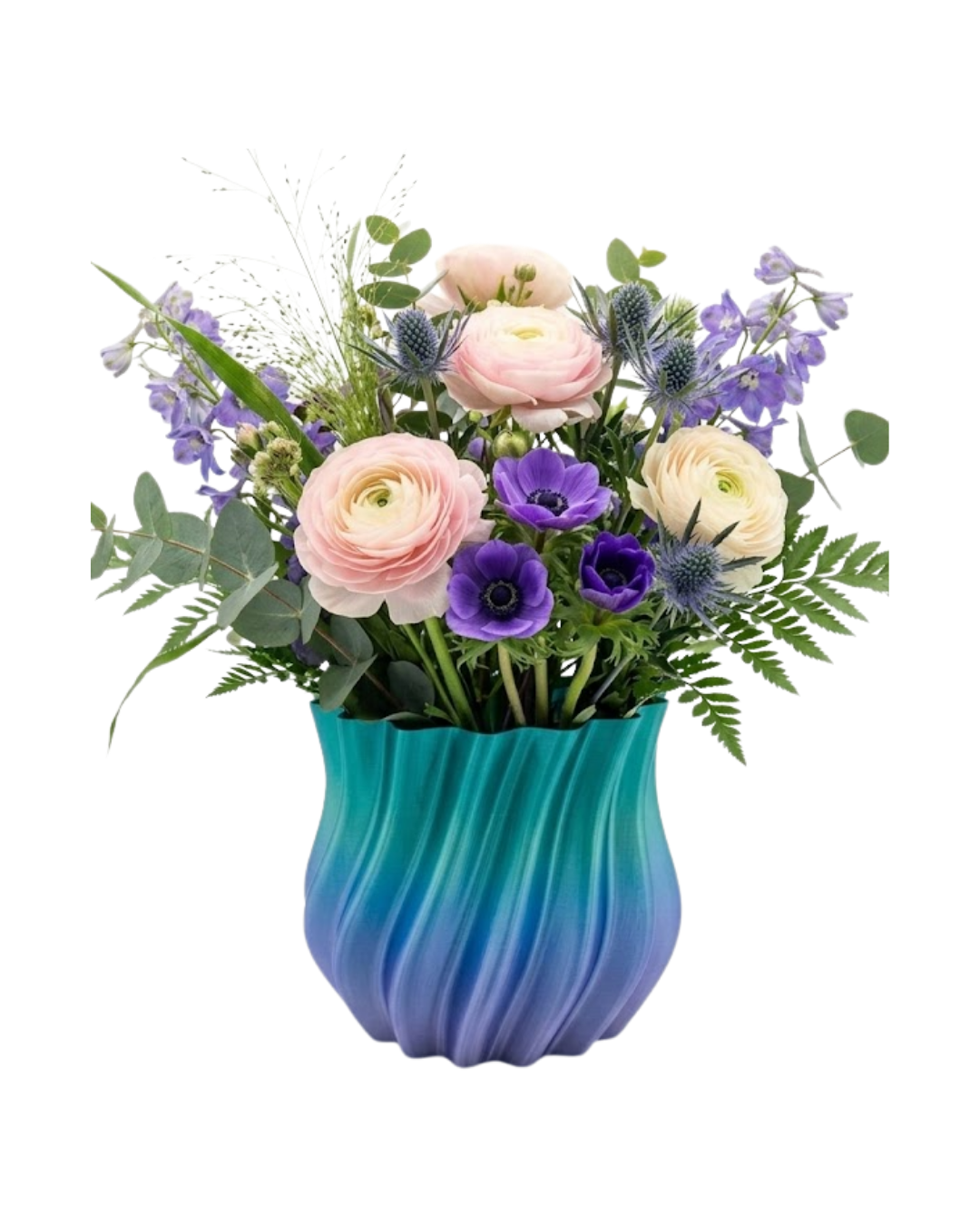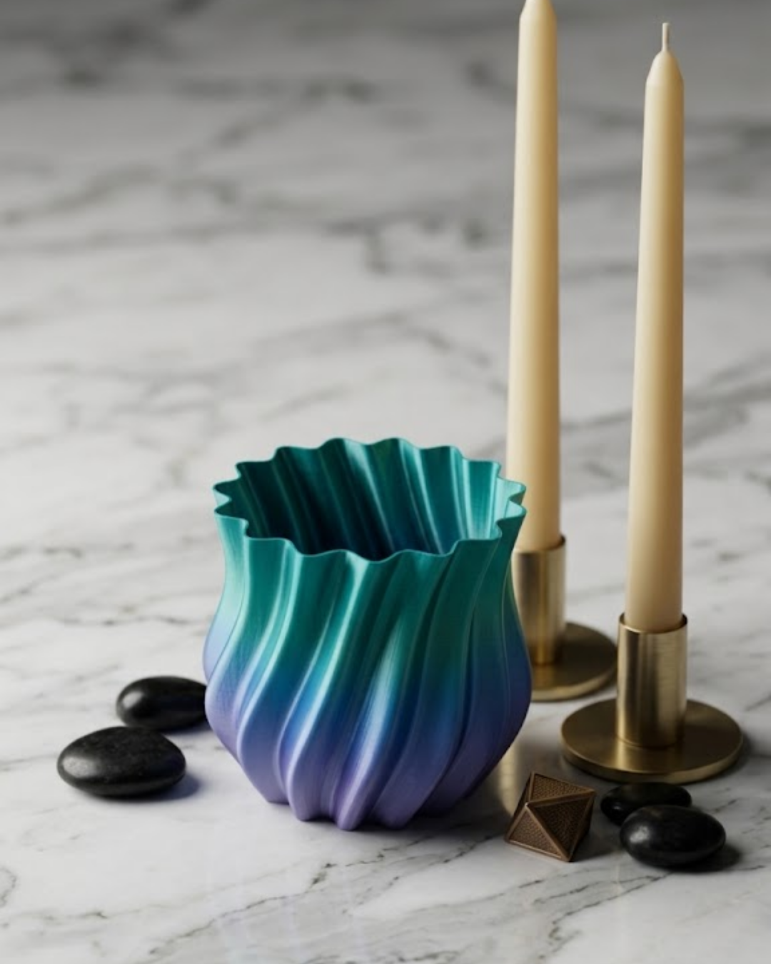 Estetik ve modern tasarımı bir araya getiren 3D kıvrımlı mavi vazo, yaşam alanlarına şıklık ve karakter katmak isteyenler için özel olarak tasarlanmıştır. Akışkan ve dalgalı formu sayesinde bulunduğu ortamda dikkat çekici bir odak noktası oluşturur. Mavi tonlarının huzur veren etkisi, özellikle sade dekorasyonlarda güçlü bir tamamlayıcı rol üstlenir. Kompakt yapısı sayesinde evin birçok farklı alanında kullanılabilir. Salon, yatak odası, çalışma alanı veya ofis dekorasyonunda rahatlıkla yer alır. Hafif yapısı sayesinde kolay taşınabilir ve farklı dekorasyon düzenlerine uyum sağlar. Ürünün kaliteli üretim yapısı, uzun süreli kullanım imkanı sunar. Kıvrımlı yüzey tasarımı, ışıkla etkileşime girerek görsel olarak zengin bir görünüm oluşturur. Bu sayede bulunduğu ortamda sıradanlıktan uzak, estetik bir atmosfer yaratır. Bu vazo yalnızca fonksiyonel bir ürün değil, aynı zamanda dekoratif bir sanat objesidir. Tek başına kullanıldığında bile bulunduğu ortamda şık bir görünüm oluşturur. Kurutulmuş çiçekler, dekoratif dallar veya yapay bitkiler ile birlikte kullanılarak farklı dekorasyon stillerine uyarlanabilir. Hem kişisel kullanım hem de hediye seçeneği olarak değerlendirilebilecek bu ürün, modern dekorasyon severler için vazgeçilmez bir parçadır.