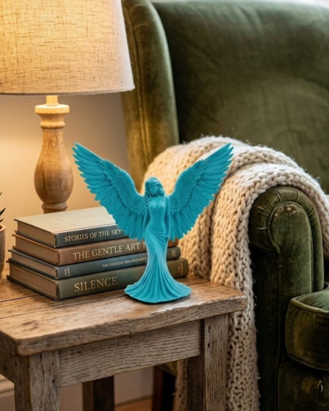 Yaşam alanlarında estetik ve anlamlı detaylara yer vermek isteyenler için tasarlanan 3D turkuaz melek biblo, modern tasarım anlayışını yansıtan şık bir dekoratif üründür. Kanatlarını açmış melek figürü, bulunduğu ortama huzur ve pozitif enerji katarken, turkuaz rengin ferahlatıcı etkisi ile mekânın atmosferini tamamen değiştirir. Kompakt boyutu sayesinde özellikle küçük alanlarda maksimum etki yaratır. Büyük dekoratif objelere ihtiyaç duymadan şık bir görünüm elde etmek isteyenler için ideal bir çözümdür. Çalışma masası, komodin, sehpa, raf ya da ofis masasında rahatlıkla kullanılabilir. Ürünün kaliteli ve detaylı üretim yapısı, uzun süreli kullanım imkanı sunar. Kanat detayları ve figürün akıcı formu, ürüne sanatsal bir dokunuş kazandırır. Parlak yüzeyi ışıkla etkileşime girerek farklı açılardan farklı görünümler oluşturur ve bu sayede bulunduğu ortamda canlı bir etki yaratır. Bu biblo yalnızca dekoratif bir obje değil, aynı zamanda anlamlı bir hediye seçeneğidir. Yeni ev hediyesi, doğum günü veya özel günlerde sevdiklerinize sunabileceğiniz şık ve zarif bir alternatiftir. Modern ve estetik yaşam alanları oluşturmak isteyenler için tasarlanan bu ürün, küçük boyutuna rağmen büyük bir etki yaratır.