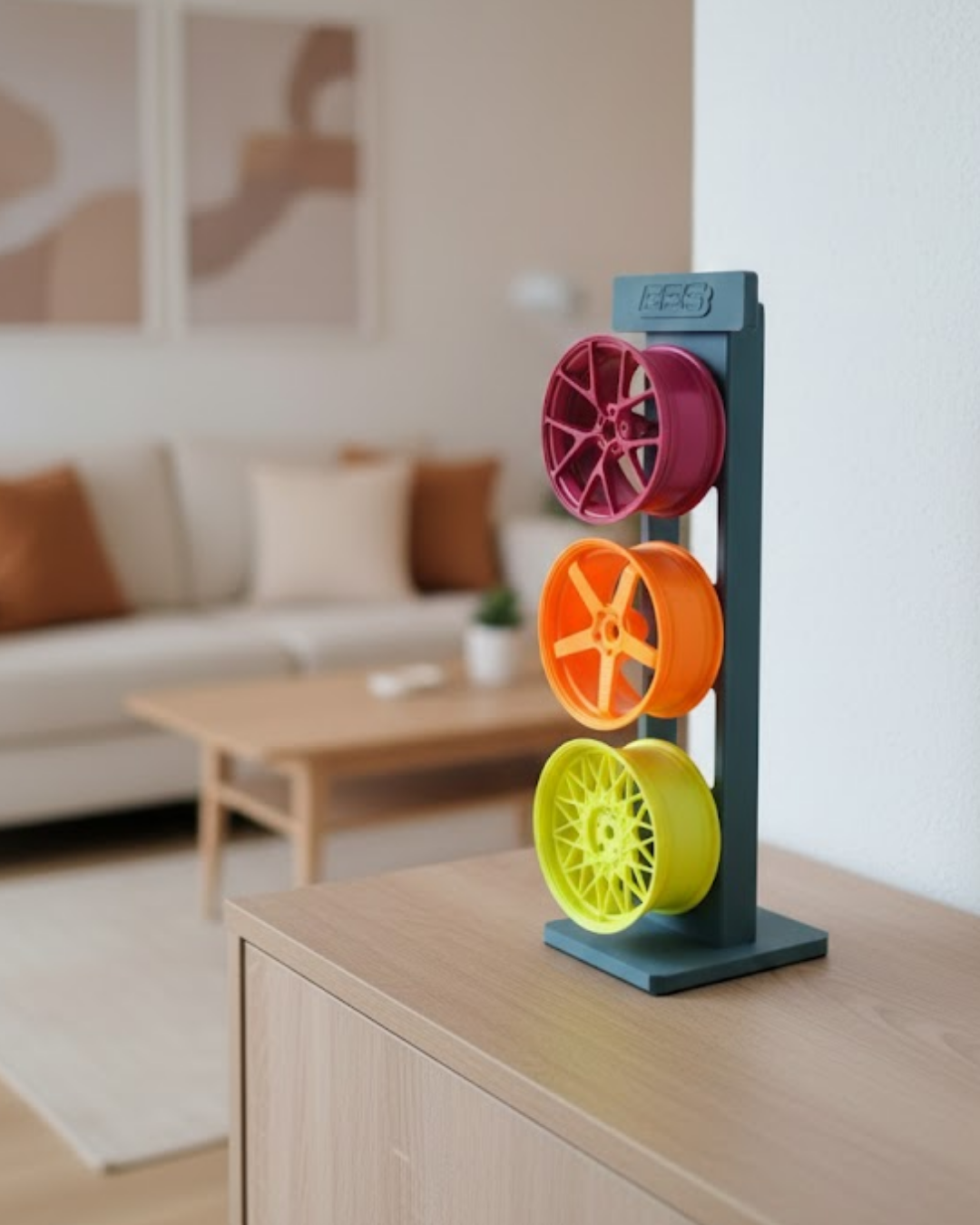 3’lü dekoratif jant seti, modern tasarımı ve renk uyumu ile dekorasyonda fark yaratmak isteyenler için tasarlanmıştır. Salon ve ofis ortamlarında estetik bir tamamlayıcı olarak kullanılabilir. Üçlü dizilimi sayesinde tek başına güçlü bir dekoratif görünüm sunar. Çalışma masası, sehpa veya raf üzerinde kolayca konumlandırılabilir. Spor ve modern dekor anlayışını bir arada sunan özel bir dekoratif üründür.