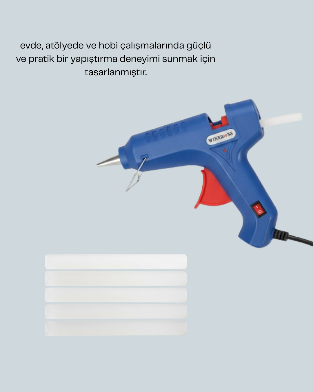 5 silikon hediyeli 40W sıcak silikon tabancası, pratik yapıştırma işlemleri için tasarlanmış fonksiyonel bir üründür. Güçlü 40W performansı sayesinde silikon çubukları kısa sürede eriterek hızlı kullanım sağlar. Paket içeriğinde yer alan 5 adet silikon çubuk, ürünü daha avantajlı ve kullanıma hazır hale getirir. Ergonomik tutma sapı, rahat kavrama sunar ve uzun süreli kullanımlarda konfor sağlar. Metal uç, ısının dengeli yayılmasını sağlar. Sıcak silikon tabancası; evde yapılan tamiratlar, hobi projeleri, süsleme çalışmaları ve el işi uygulamaları için uygundur. Ahşap, plastik, karton ve kumaş gibi birçok yüzeyle uyumlu çalışır. Günlük kullanımda pratiklik sunar ve karmaşık kullanım gerektirmez. Isıya dayanıklı gövde yapısı, güvenli bir kullanım deneyimi sunar. Açma kapama düğmesi sayesinde kontrol tamamen sizdedir. Kompakt tasarımı ile az yer kaplar ve kolay saklanır. 5 silikon hediyeli bu ürün, fiyat performans açısından avantajlı bir seçenektir. Hem ev kullanıcıları hem de hobiyle ilgilenenler için güvenilir ve kullanışlı bir sıcak silikon tabancasıdır.