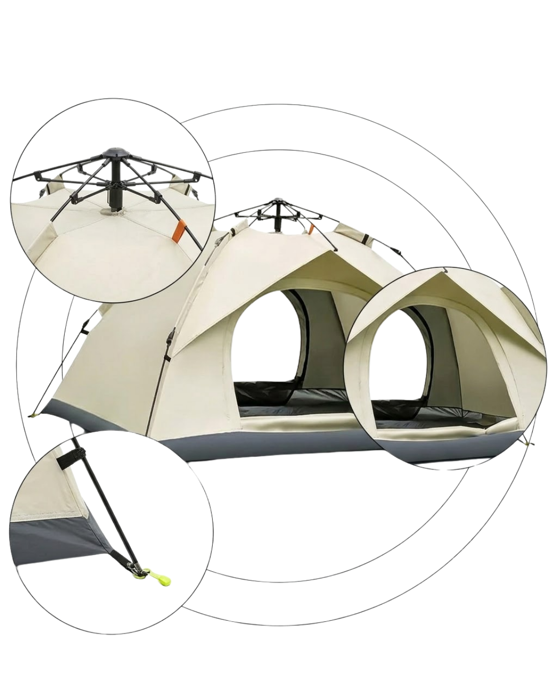 Otomatik kamp çadırı, doğa ile baş başa kalmak isteyenler için pratik ve konforlu bir çözüm sunar. 200x150x120 cm ölçülerindeki geniş iç alanı, kullanıcıya rahat bir konaklama imkanı sağlar. Çift katmanlı yapısı sayesinde dayanıklılığı artırılmıştır. Kurulumu son derece kolaydır. Otomatik açılma sistemi sayesinde kısa sürede hazır hale gelir. Bu özellik, özellikle kamp deneyimi az olan kullanıcılar için büyük avantaj sağlar. Suya dayanıklı dış yüzeyi, hafif yağmur ve nemli hava koşullarında koruma sağlar. İç yapısı ise hava sirkülasyonunu destekleyerek konforlu bir kullanım sunar. Hafif ve taşınabilir olması, ürünü farklı alanlarda kullanım için uygun hale getirir. Kamp, piknik, festival ve doğa yürüyüşlerinde rahatlıkla kullanılabilir. Estetik ve modern tasarımı sayesinde hem fonksiyonel hem de görsel olarak tatmin edici bir üründür. Kullanıcı dostu yapısı ile herkesin rahatlıkla kullanabileceği bir kamp ekipmanıdır.