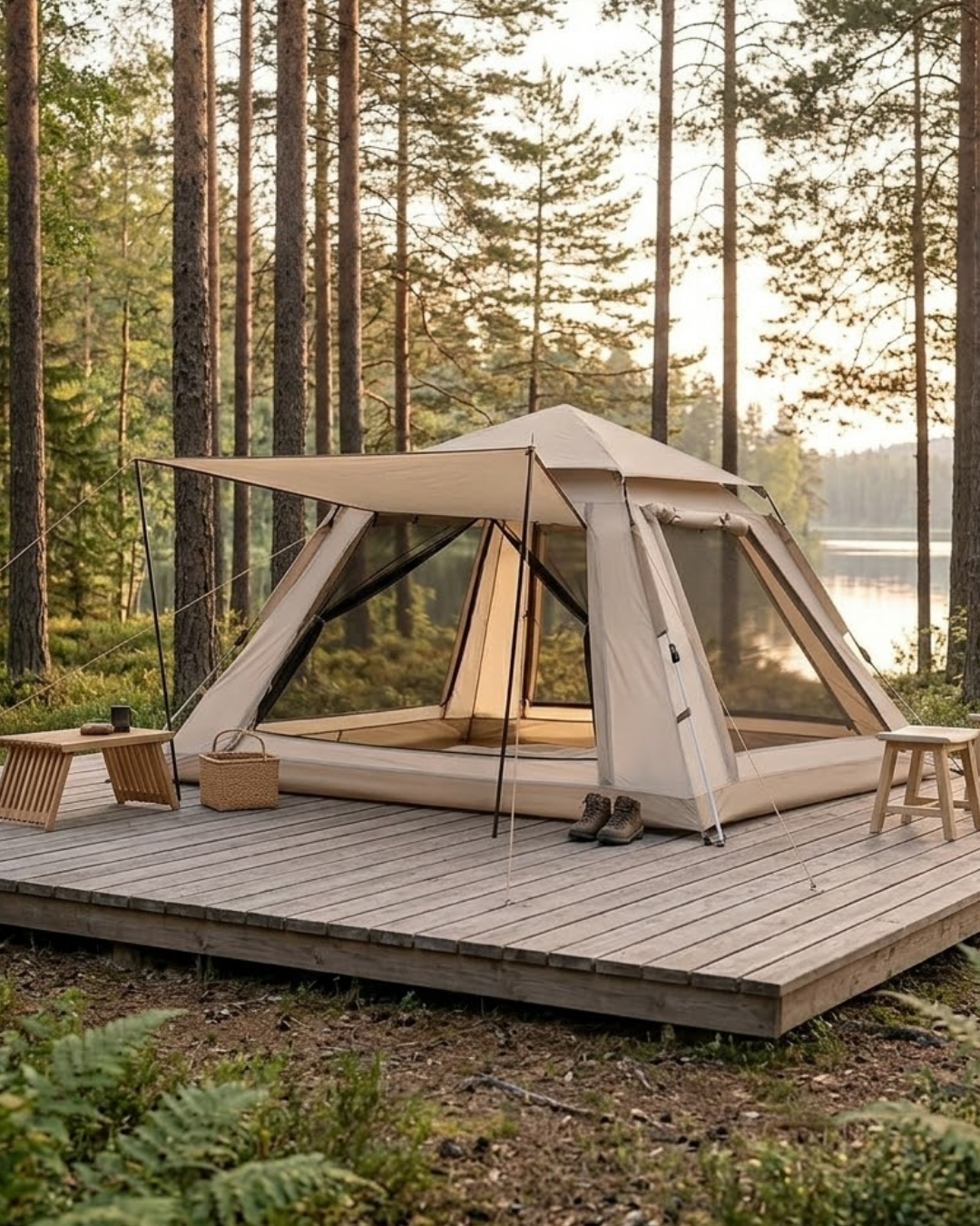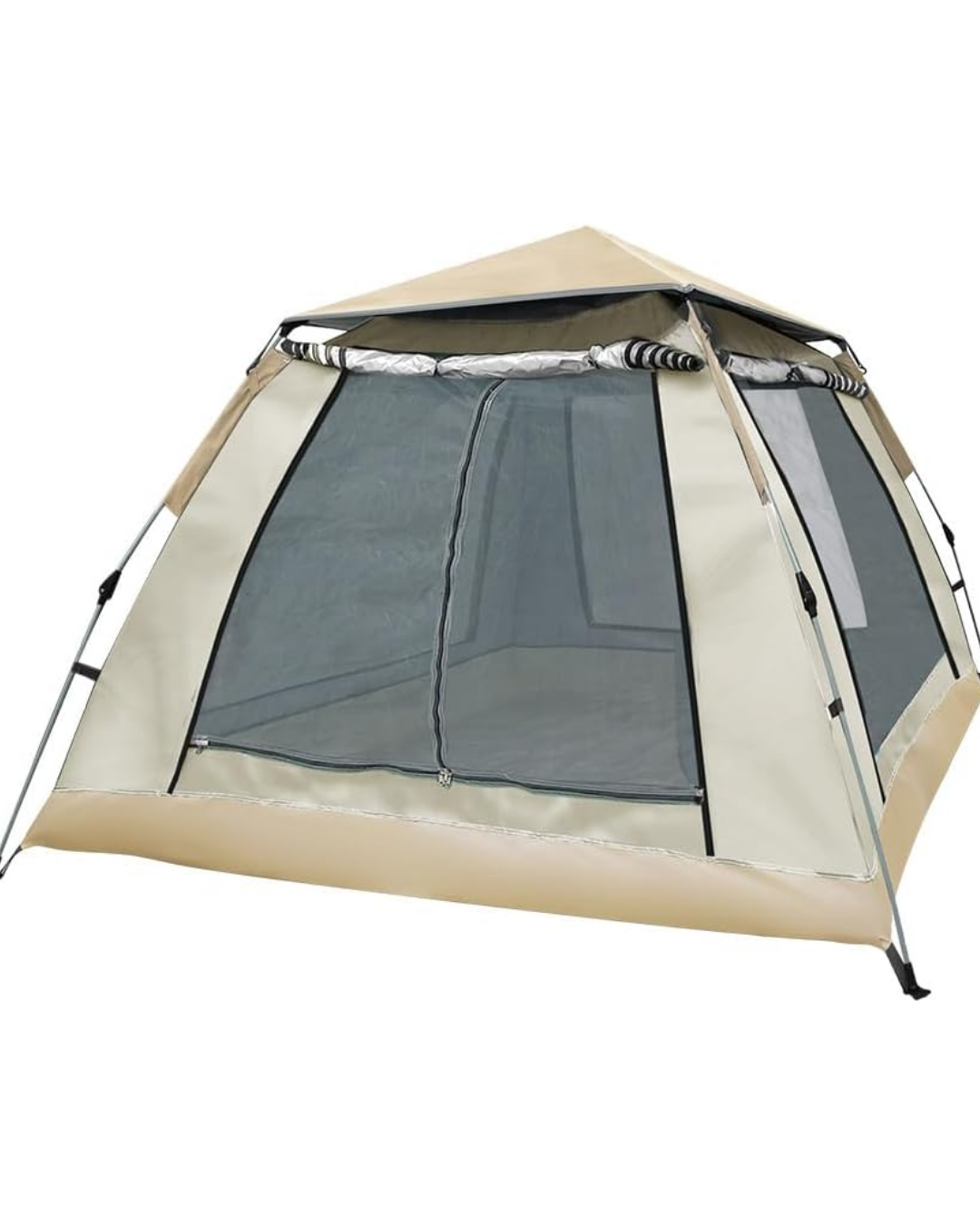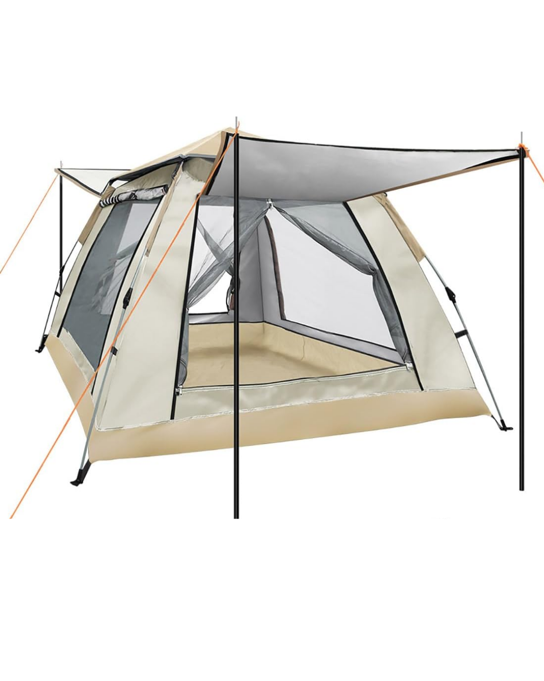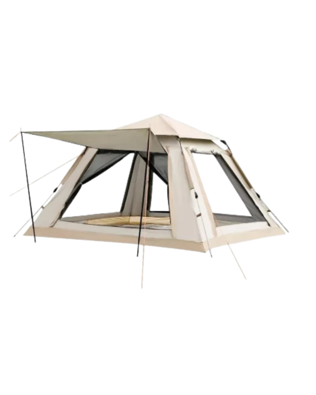 Doğada geniş ve konforlu bir alan sunan bu kamp çadırı, pratik kullanımı ve dayanıklı yapısı ile dikkat çeker. 240x240 cm taban ve 160 cm yükseklik ölçülerine sahip olan bu çadır, 6 kişinin rahatlıkla konaklayabileceği geniş bir alan sunar. Geniş iç hacmi sayesinde konforlu bir kullanım sağlar. Güneşlikli yapısı sayesinde ekstra alan sunar. Otomatik kurulum sistemi sayesinde kolay kullanım sağlar. Su geçirmez yapısı sayesinde dış etkenlere karşı koruma sunar. Havalandırma sistemi sayesinde ferah bir ortam oluşturur.