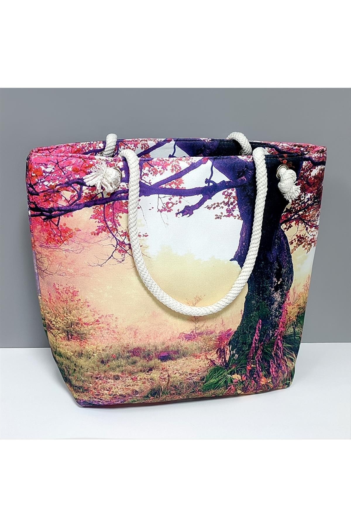 Ağaç Desenli Plaj Çantası