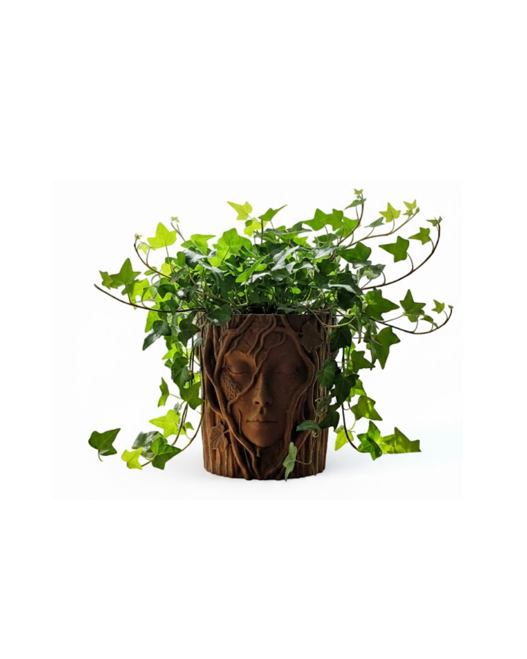 Doğanın ruhunu yansıtan yüz figürü ve ağaç dokusuyla tasarlanmış bu dekoratif saksı, sıradan aksesuarların ötesinde bir sanat parçasıdır. Toprak tonları, doğal dokusu ve üç boyutlu kabartmaları sayesinde bulunduğu alanda sofistike bir etki yaratır. Hem kendiniz hem sevdikleriniz için estetik ve anlamlı bir hediye alternatifidir.