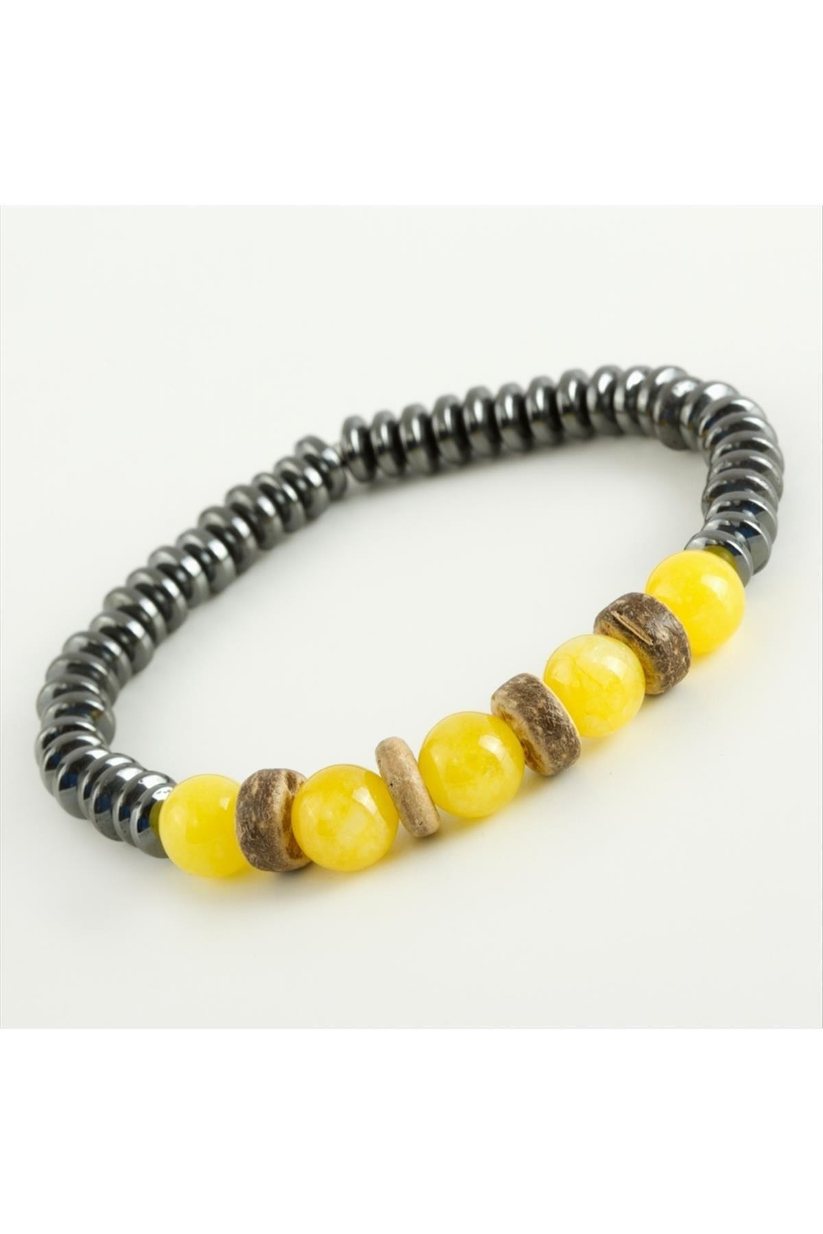 Doğaltaş Bileklik; Ürün malzemesi akik ve hematit doğaltaştan imal edilmiştir. Ürün malzemesi misina üzerine dizilmiştir.
