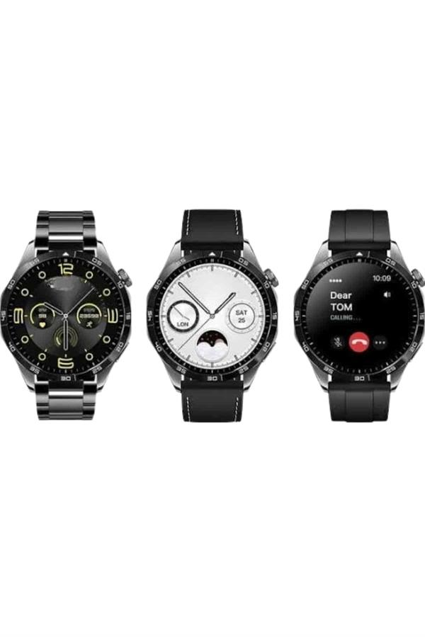 Şık ve Fonksiyonel Tasarım1.55 inçlik büyük HD IPS ekranı, 400*400 piksel çözünürlüğüyle tüm detayları net bir şekilde sunar. Tam dokunmatik ekran sayesinde kolayca erişim sağlanabilir. Üç farklı kordon seçeneği (metal, deri ve silikon) ile saat, stilinize mükemmel uyum sağlar ve her kombine özel kullanım imkânı sunar. Değiştirilebilir kordon özelliği, saatinizin her zaman yeni gibi görünmesini sağlar.Akıllı Özellikler ve Sağlık TakibiTüm akıllı telefonlarla uyumlu olan bu akıllı saat, Türkçe dil desteği sunar. Saat üzerinden gelen telefon aramalarını yanıtlayabilir,  sosyal medya bildirimlerini ekrandan görüntüleyebilirsiniz. Nabız ölçer, tansiyon ölçer, kalori ölçer gibi sağlık izleme özellikleri ile kişisel sağlığınızı takip edebilirsiniz. Ayrıca, adım sayar, egzersiz kilometre kaydı ve uyku takibi gibi fitness özellikleri de bulunur. 100 farklı spor modu ile egzersizlerinizi kaydedebilir, gelişiminizi izleyebilirsiniz.Pratik ve Uzun Süreli Kullanım280 mAh kapasitesindeki batarya, uzun süreli kullanım imkânı sağlar. Bluetooth 3.0, 4.0 ve 5.0 sürümleri ile uyumlu olan bu cihaz, mobil cihazlarla hızlı ve güvenli bir bağlantı kurar. Ayrıca alarm, takvim, kronometre ve anti-kayıp hatırlatıcı gibi günlük hayatı kolaylaştıran özelliklerle donatılmıştır. 2.5D yüzey kapasitif dokunmatik ekran, hem şık hem de kullanımı oldukça rahat hale getirir.