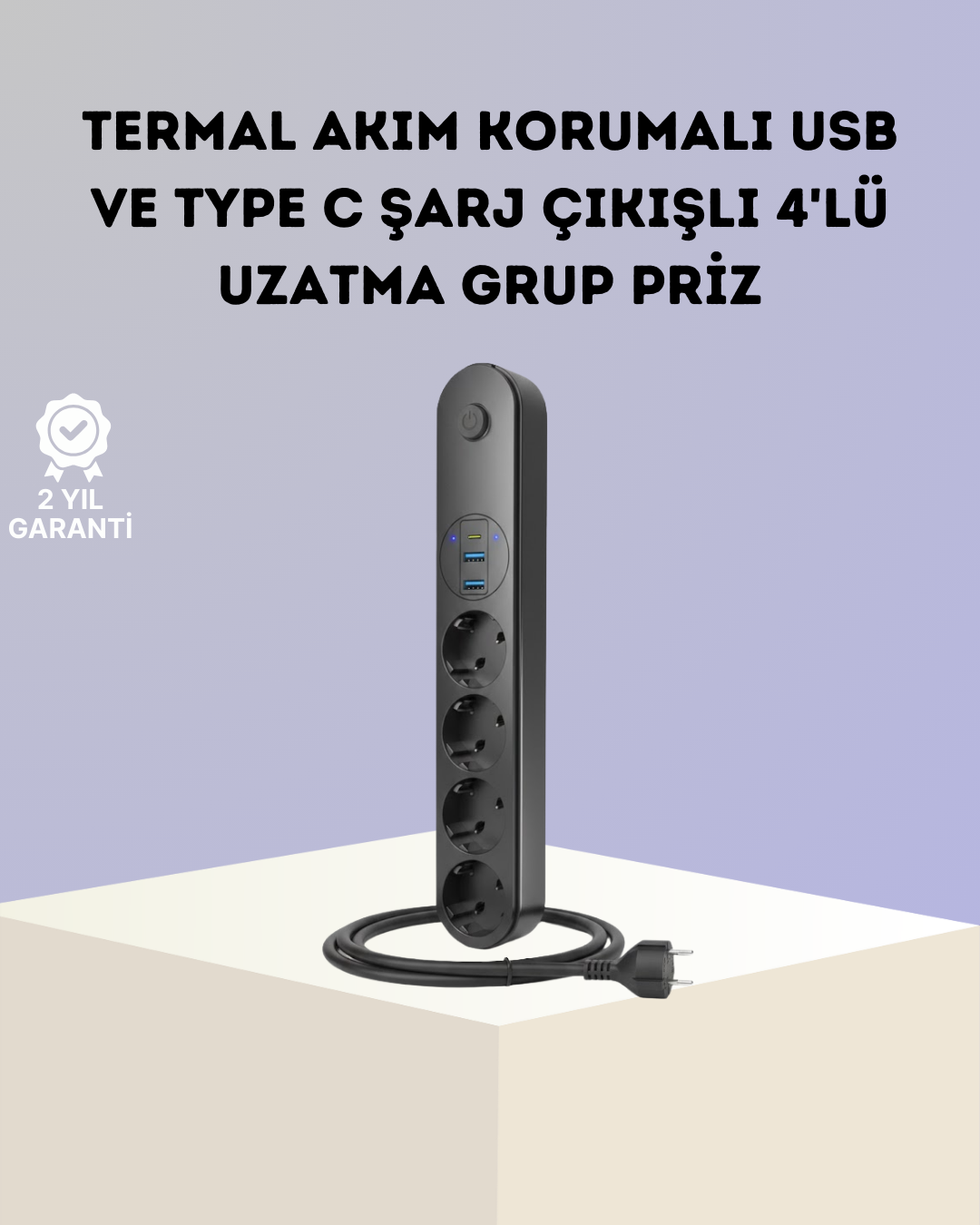 Akım Korumalı Çoklu Priz 4’lü 2 USB 1 Type-C 2500W Güçlü Tasarım