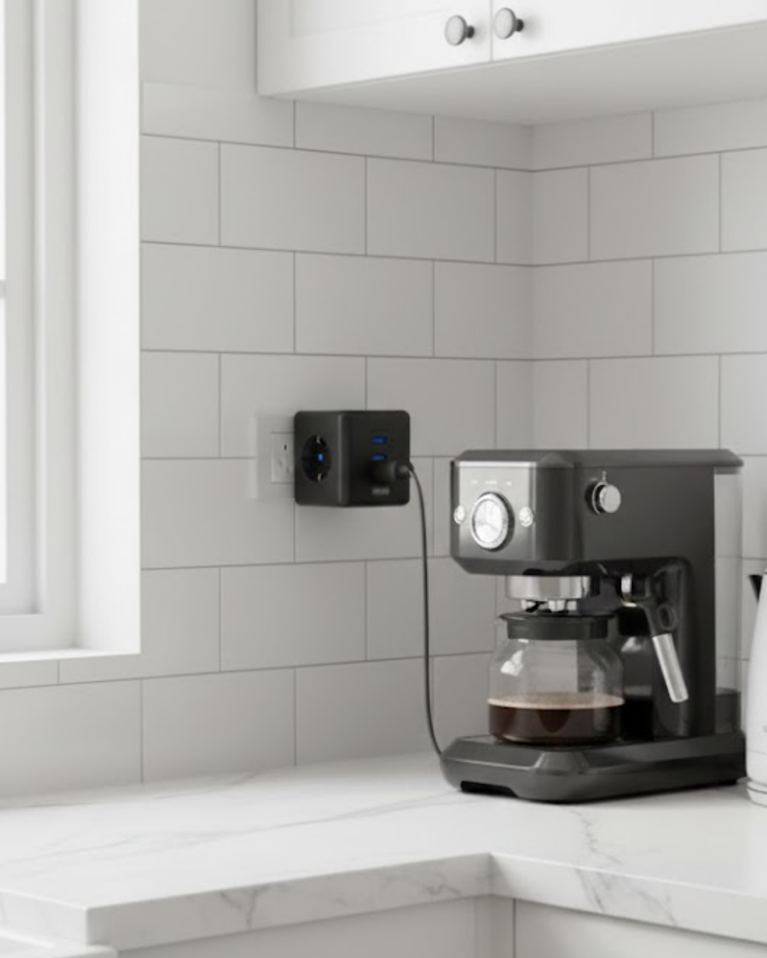 Akım ve Voltaj Korumalı Küp Priz 3 USB Destekli