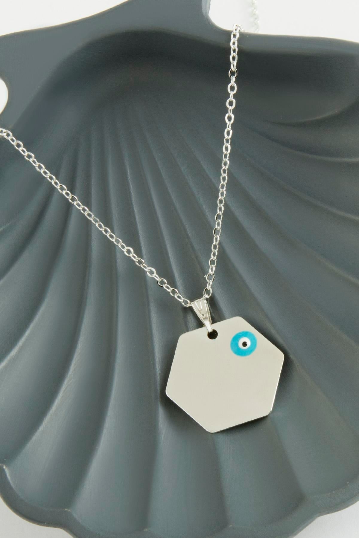 Kolye; Ürün malzemesi metaldir. Ürün zincir uzunluğu 45 cmdir. Kartıyla beraber gönderilecektir. Ucundaki aparat boyu 2 cmdir.