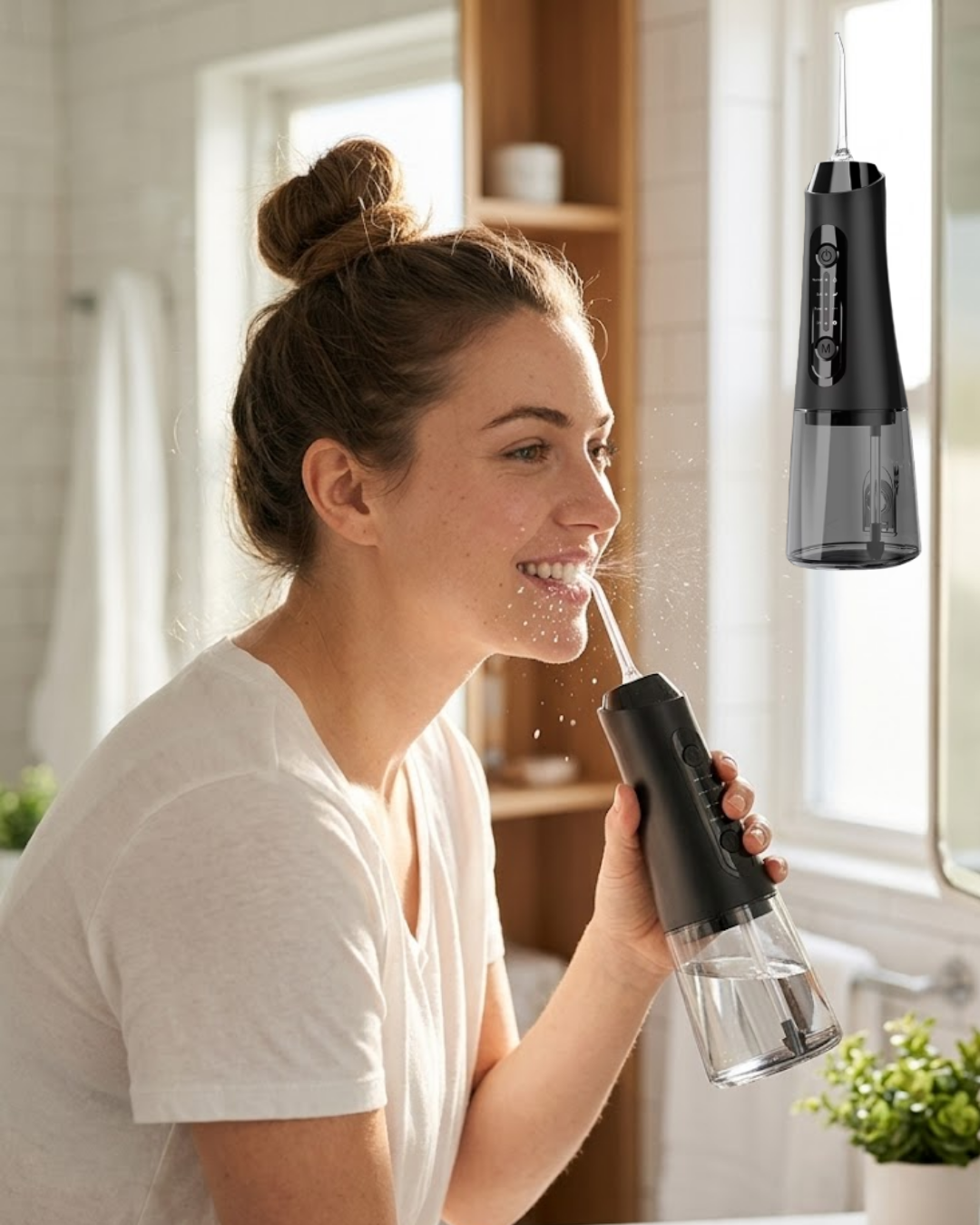 Şarjlı ağız duşu, diş arası temizlik için etkili bir yardımcıdır. Ayarlanabilir basınç ve farklı modlar ile kişisel kullanım sunar. IPX7 su geçirmez özelliği ile güvenli kullanım sağlar. 320 ml su haznesi ile uzun süre kullanım imkanı sunar. 5 başlık ile geniş kullanım alanı sağlar.