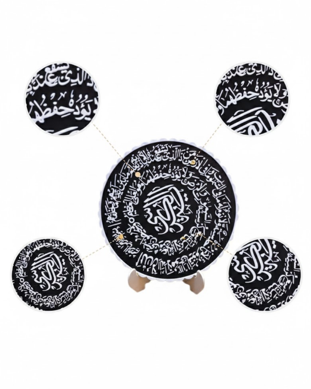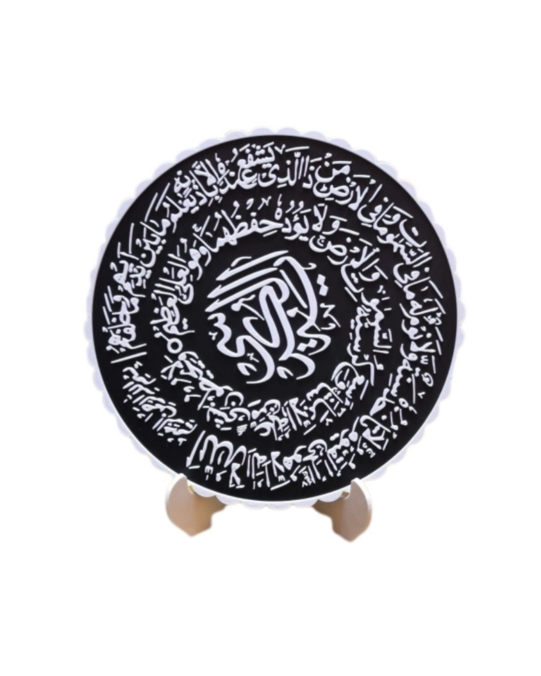 Bu dekoratif pano, Ayetel Kürsi’nin manevi anlamını estetik bir tasarım ile sunar. Siyah beyaz kontrast yapısı sayesinde modern dekorasyonlara uyum sağlar. Standlı yapısı sayesinde pratik kullanım sunar. Konsol, kitaplık ve masa üstünde rahatlıkla sergilenebilir. Hem dini hem dekoratif bir obje arayanlar için ideal bir tercihtir.
