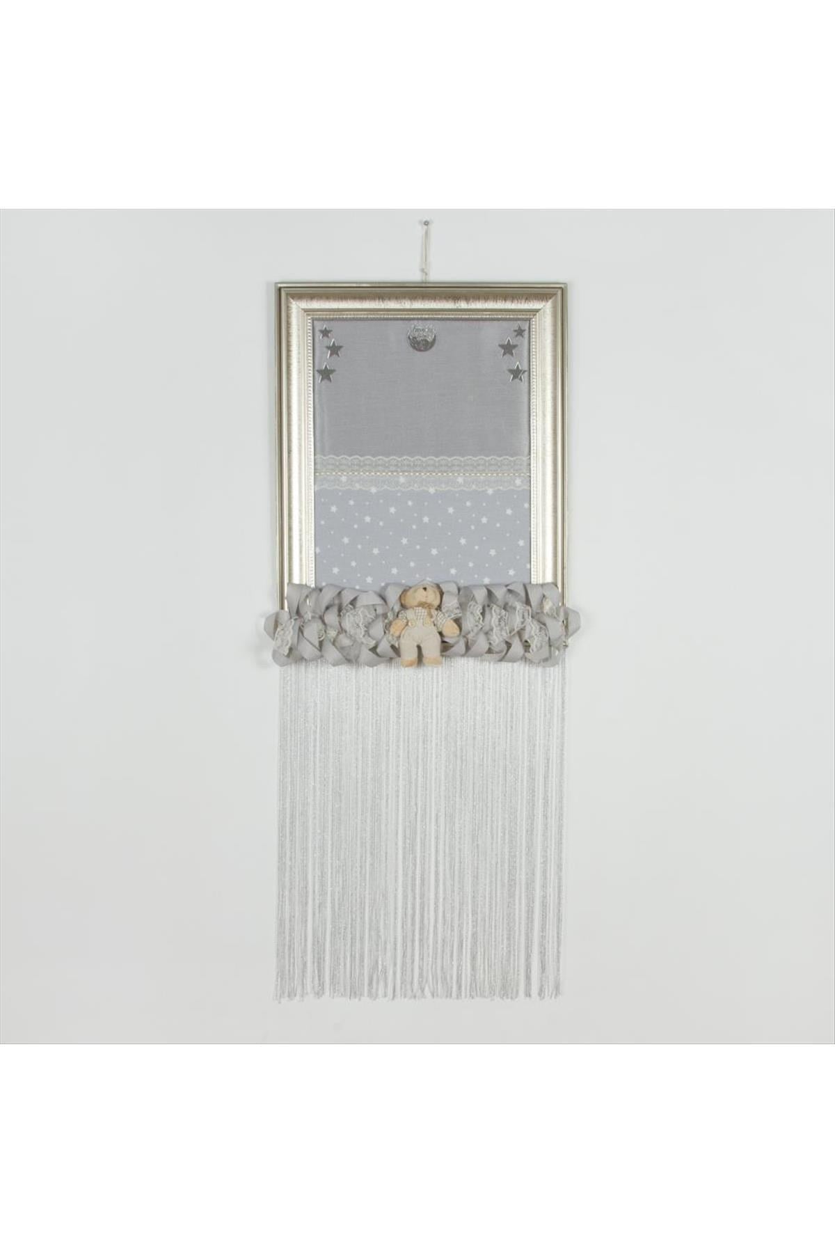 Kapı Süsü; Ürün ahşap ve yünden üretilmişdir. Ahşap içersine tül, fiyong yünlü kumaş ve ayıcık figürleri ile yapılmaktadır. Ürün çerçeve boyu 48*40 cmdir. Özel günlerinizde kullanabilirsiniz.