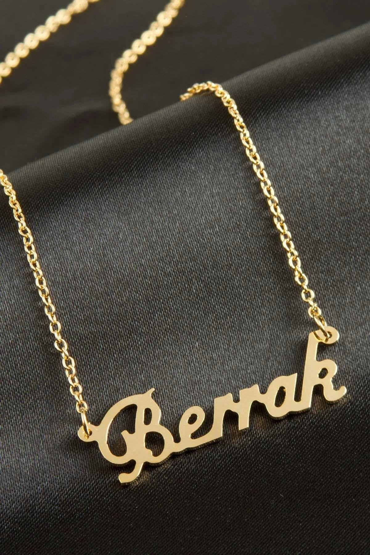 Berrak İsimli Kolye. İsimli kolye pirinç madeninden ve altın kaplamalıdır. Kişiye özel üretilmektedir.Yazdırmak istediğiniz ismi bize mesaj olarak iletmeniz gerekmektedir. Kullanıma bağlı olarak uzun süre kullanıma uygundur. Ürün malzemesi 1.sınıf kalitededir. Ürün ve zinciri sarı renktedir. Ürün zincir boyu 45 cm ve ürün üzerindeki isimler yaklaşık 3 cmdir. İsim boyları ürün ismine göre degişiklik göstermektedir.