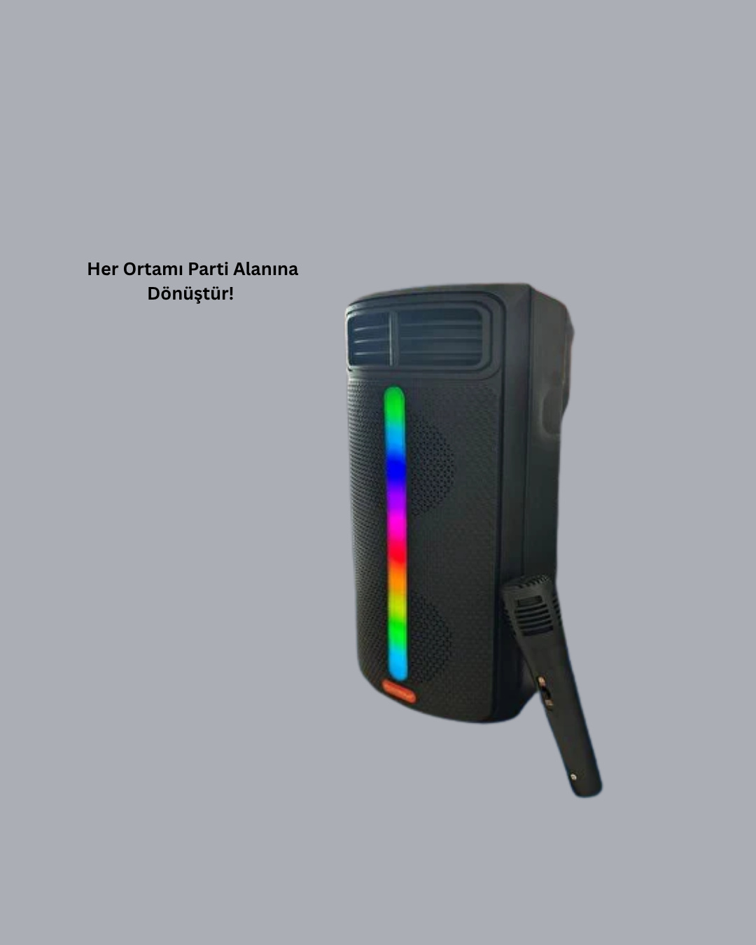 Bu Bluetooth Işıklı Hoparlör, güçlü ses perfor Bluetooth bağlantısı ile telefon, tablet veya bilgisayarınıza saniyeler içinde bağlanın. 800 mAh şarjlı pili sayesinde 2 saat boyunca müziğin tadını çıkarın. DC kablosu ile hızlı şekilde şarj edilebilir. Hafif ve ergonomik tasarımıyla kolayca taşınabilir. Pikniklerde, gezilerde veya evde rahatça kullanabileceğiniz bir hoparlördür. Kablo derdini ortadan kaldırır, özgürce müzik dinlemenizi sağlar. mansı ve dikkat çekici ışık efektleriyle müzik keyfini yeni bir seviyeye taşıyor. 2x5W ses çıkışıyla temiz, net ve yüksek ses deneyimi sunar. Renk değiştiren RGB ışıkları, dinlediğiniz müzikle birlikte hareket ederek ortamınıza enerjik bir atmosfer kazandırır. Siyah renkli modern tasarımı sayesinde her ortama uyum sağlar. Şarj edilebilir piliyle 2 saate kadar kesintisiz müzik dinleyebilir, ister evde ister dışarıda kablosuz müzik keyfinin tadını çıkarabilirsiniz.