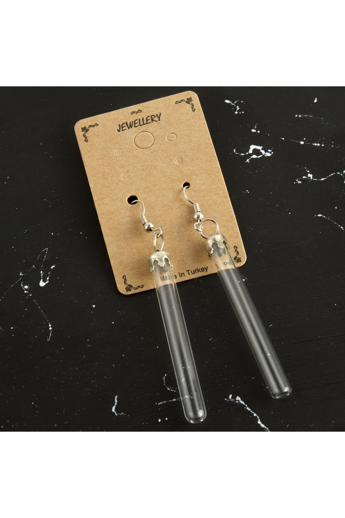 Küpe; Malzemesi fanus ve metaldir. Kartıyla beraber gönderilecektir. Ürün boyu yaklaşık 5,5 cm'dir.