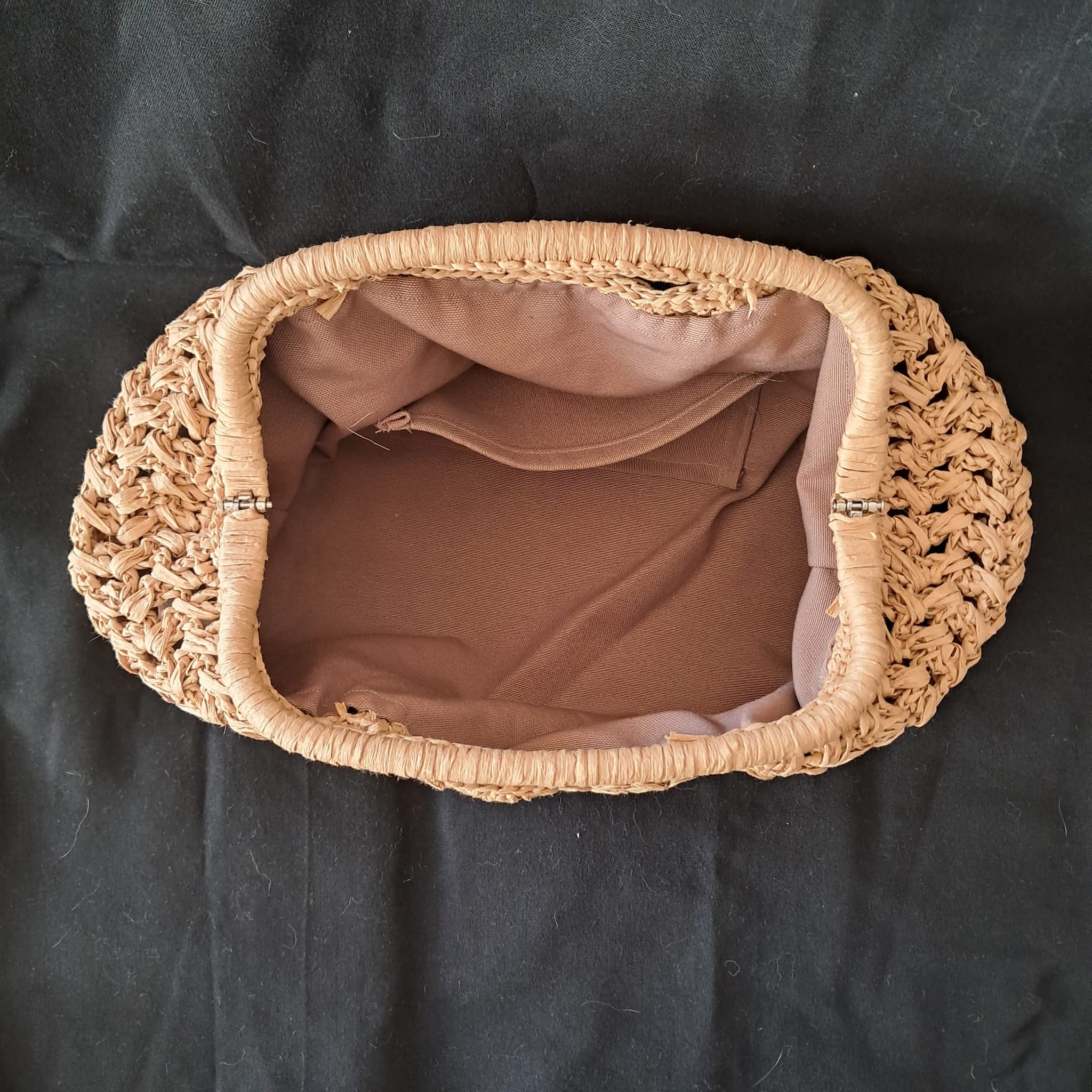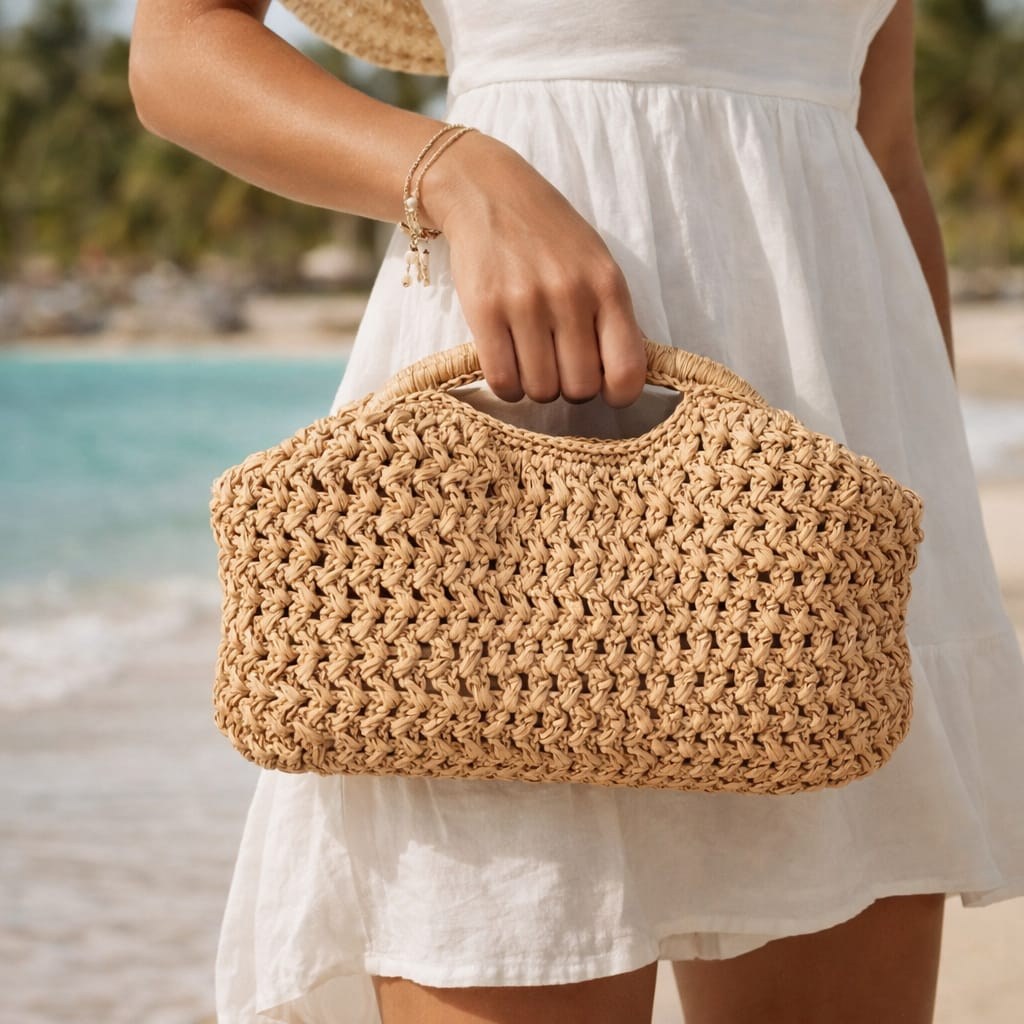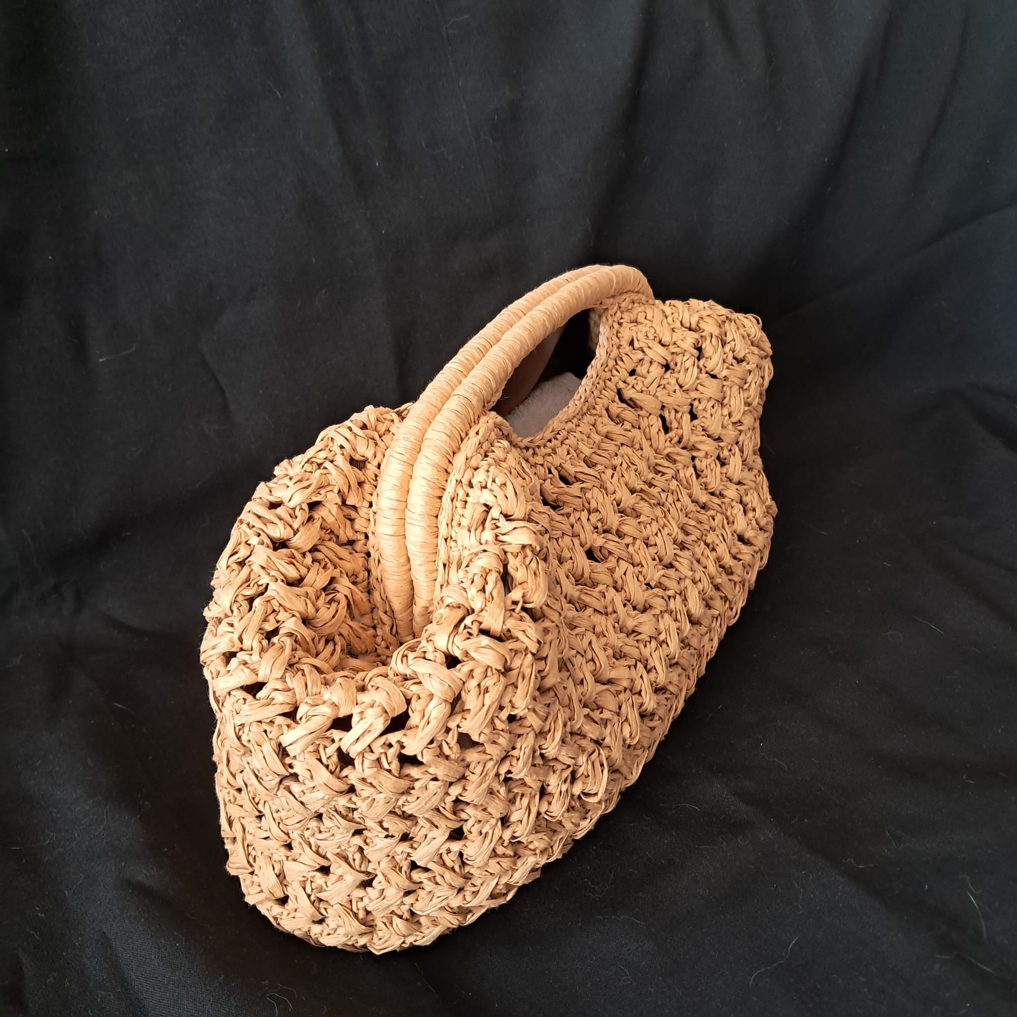 Doğal ve şık görünümüyle dikkat çeken el yapımı rafya kadın çanta, yaz kombinlerinin vazgeçilmez aksesuarlarından biridir. %100 el emeği ile rafya ip kullanılarak özenle örülen bu çanta, hem estetik hem de kullanışlı tasarımıyla günlük kullanım için ideal bir seçenektir.