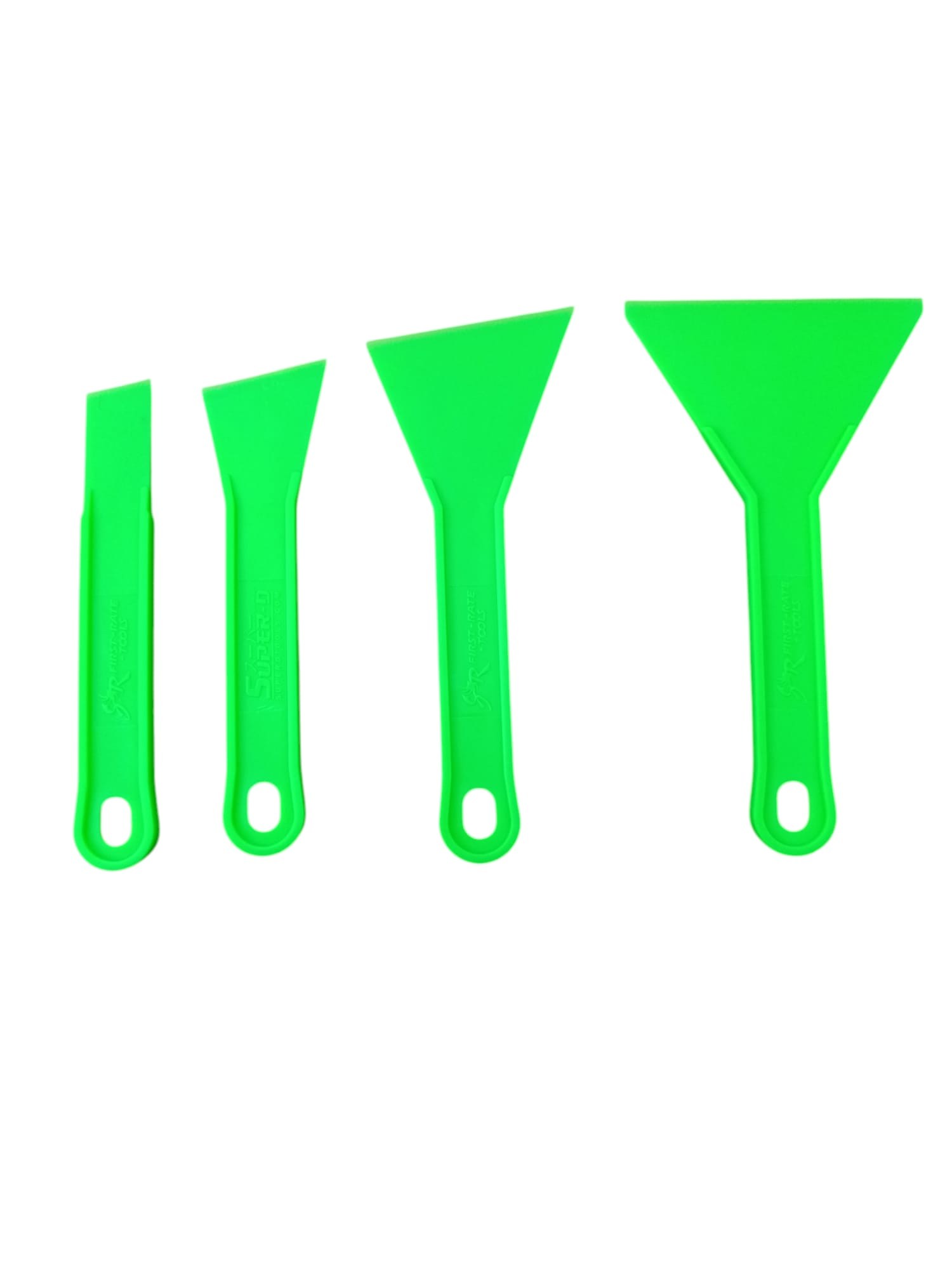 4 parçadan oluşan cam filmi çekme aparatı seti, araç cam filmi, reklam folyosu ve vinil kaplama uygulamaları için en gerekli araçları bir arada sunar. Yüzeydeki su, hava ve yapışkan kalıntılarını etkili şekilde temizlemek ve düz bir uygulama sağlamak için tasarlanmıştır. Hem profesyonel hem bireysel kullanım için uygundur.