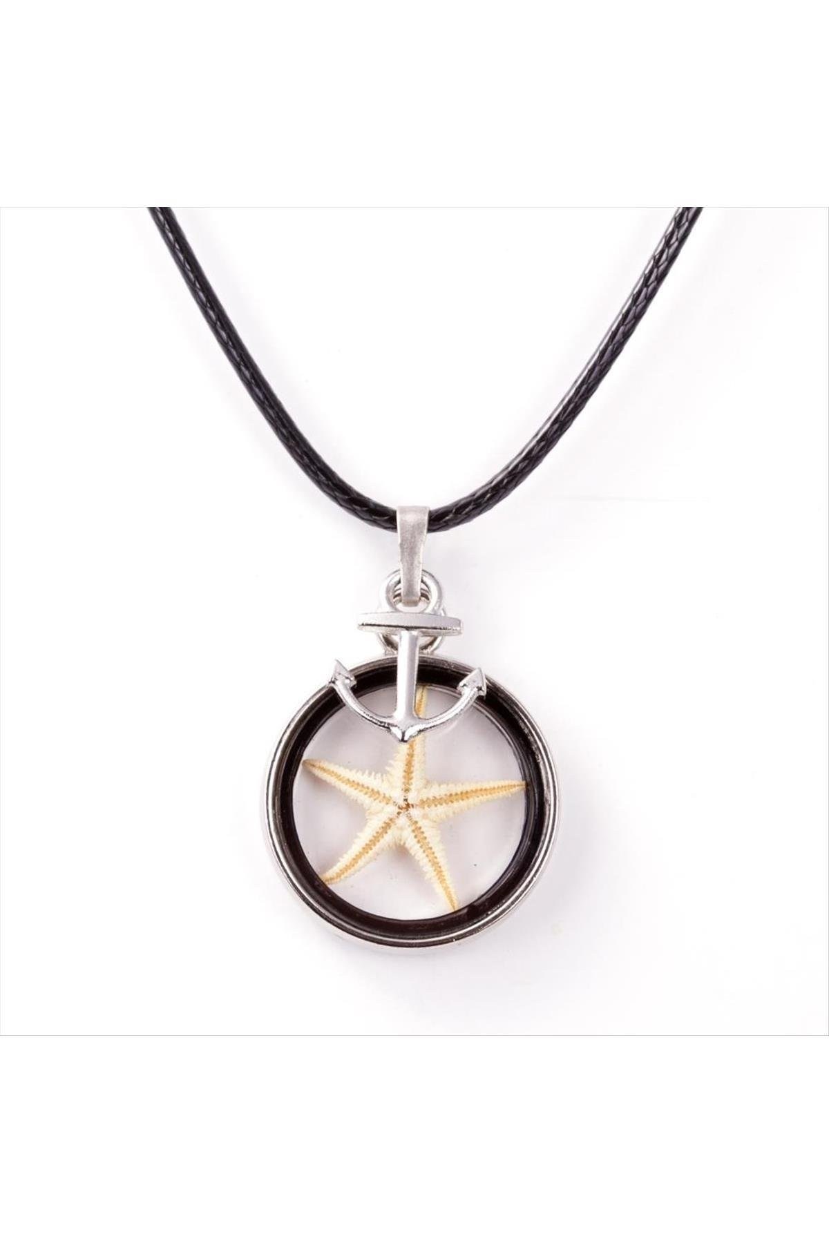 Kolye; Malzemesi Metal ve Camdır. Kordonu Vinlex Deridir. İçersindeki Bitkiler Canlıdır. Ürün içindeki deniz yıldızı boyu küçük ve büyük olarak karışık gönderilecektir. Ürün içindeki deniz yıldızı figür boyları asortilidir. Siparişlerinizde karışık olarak gönderilecektir.