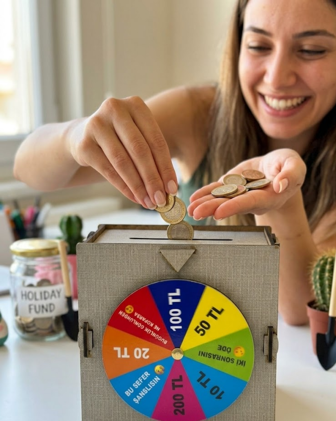 Dekoratif şans çarklı kumbara, tasarrufu eğlenceli hale getiren ve kullanıcıya farklı bir deneyim sunan özel bir üründür. Üzerinde bulunan şans çarkı sayesinde her kullanımda farklı bir sonuç elde edilir ve bu da kullanıcıyı motive eder. Para biriktirme sürecini oyunlaştırarak daha keyifli hale getirir. Geniş iç hacmi sayesinde uzun süreli kullanım sağlar. Dayanıklı malzeme yapısı ile uzun ömürlüdür. Çocuklar ve yetişkinler için uygundur. Eğlenceli yapısı ile dikkat çeker ve tasarrufu alışkanlık haline getirir. Modern ve şık tasarımı ile dekoratif bir ürün olarak da kullanılabilir.