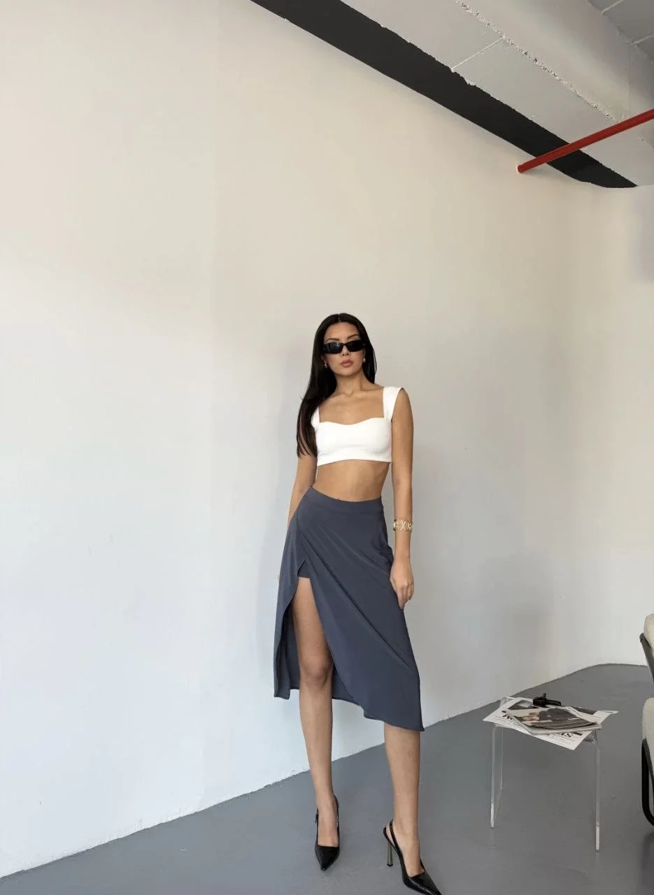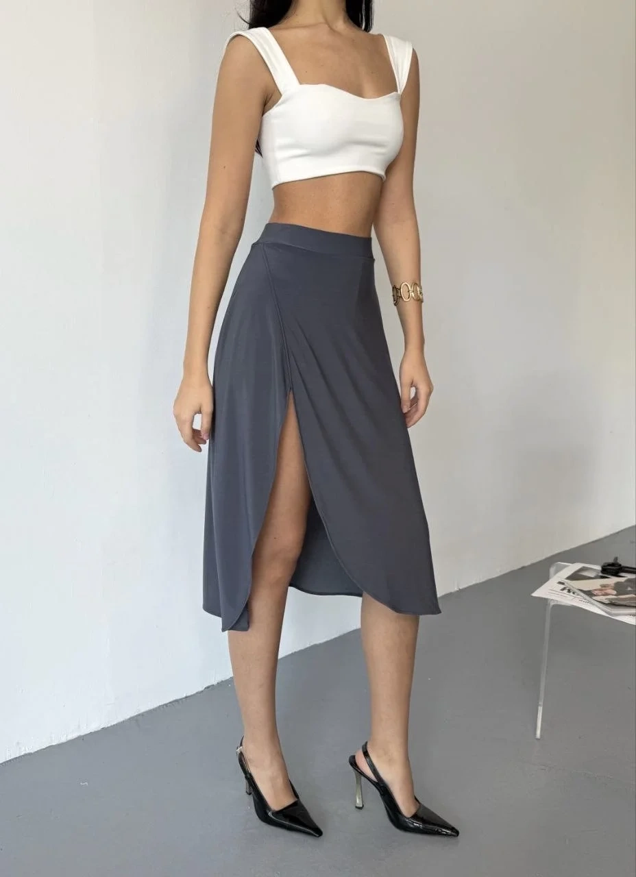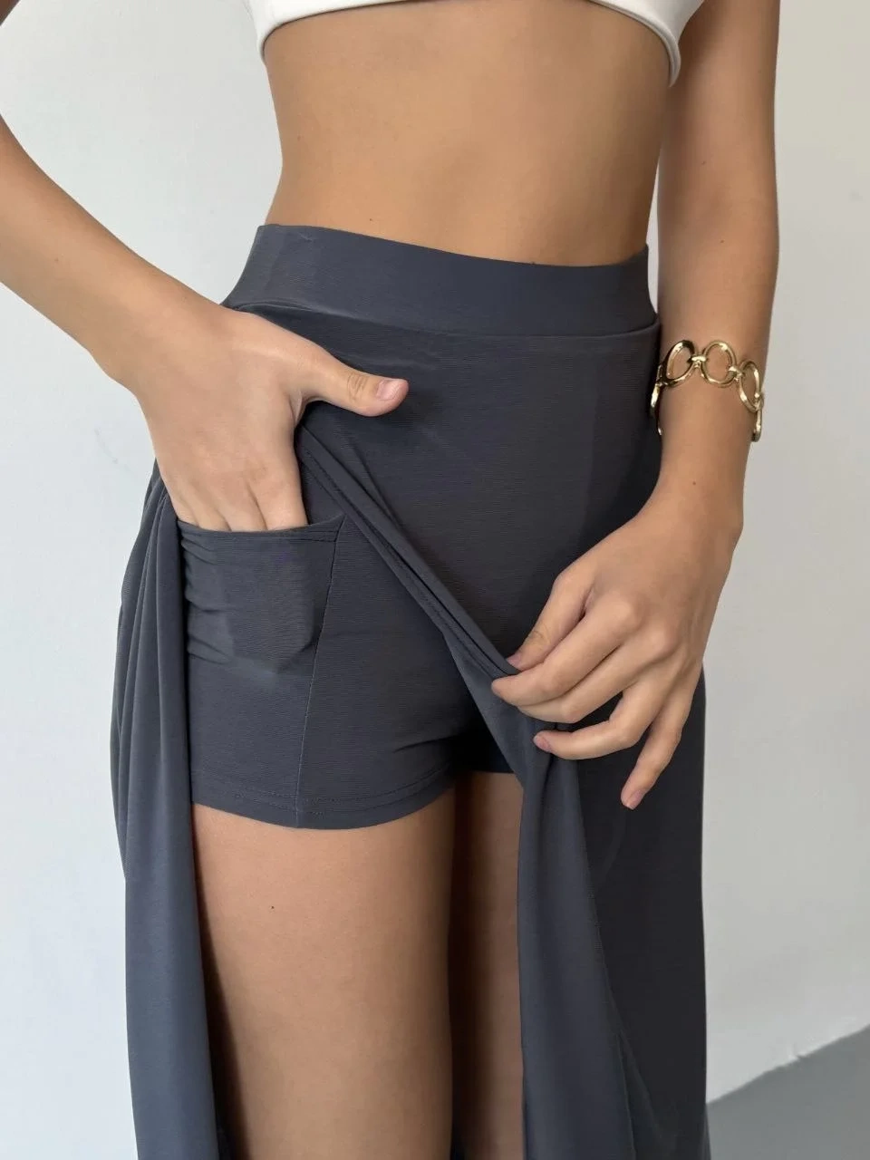 Cepli Şortlu Yırtmaçlı Etek - Siyah