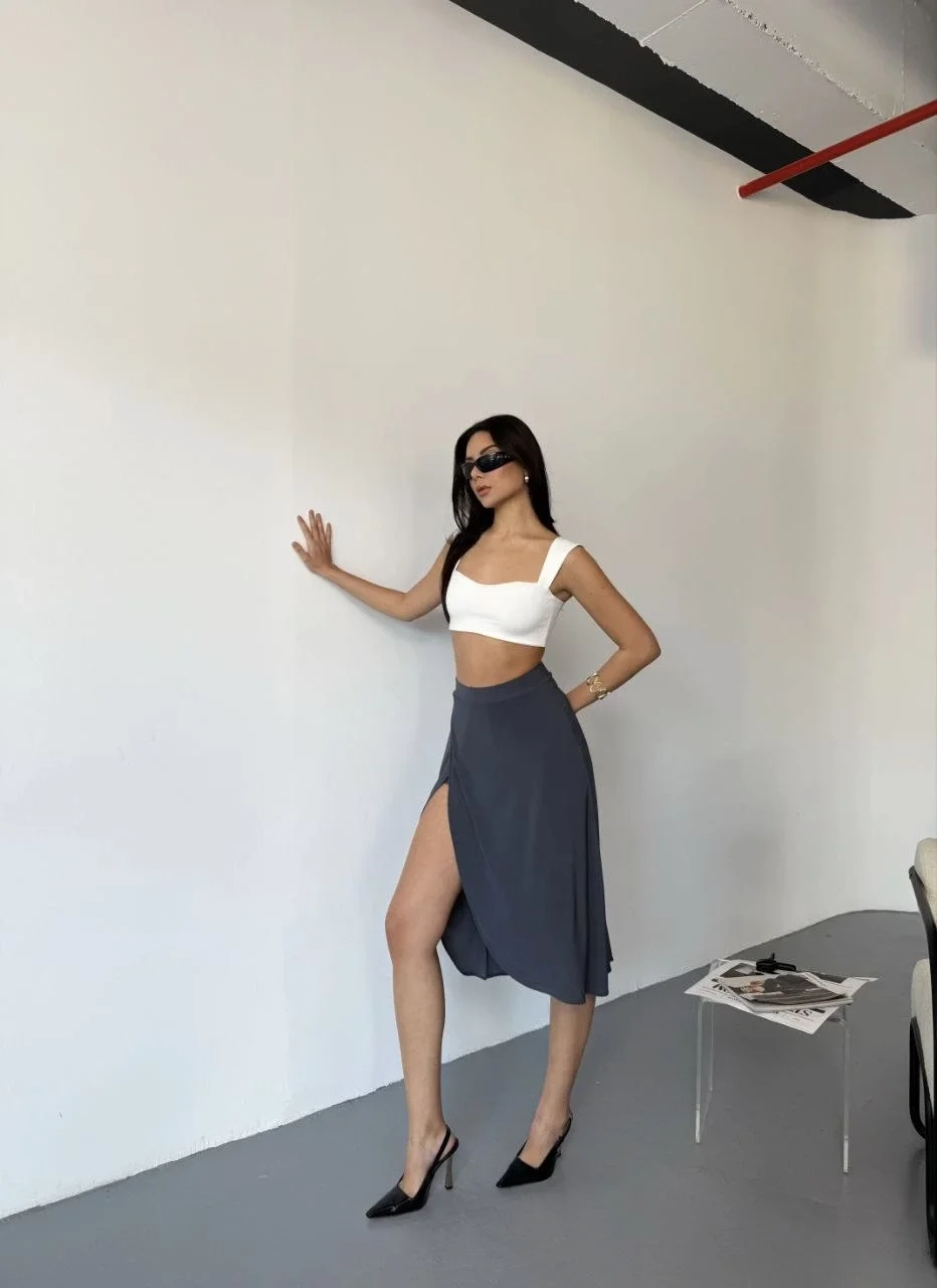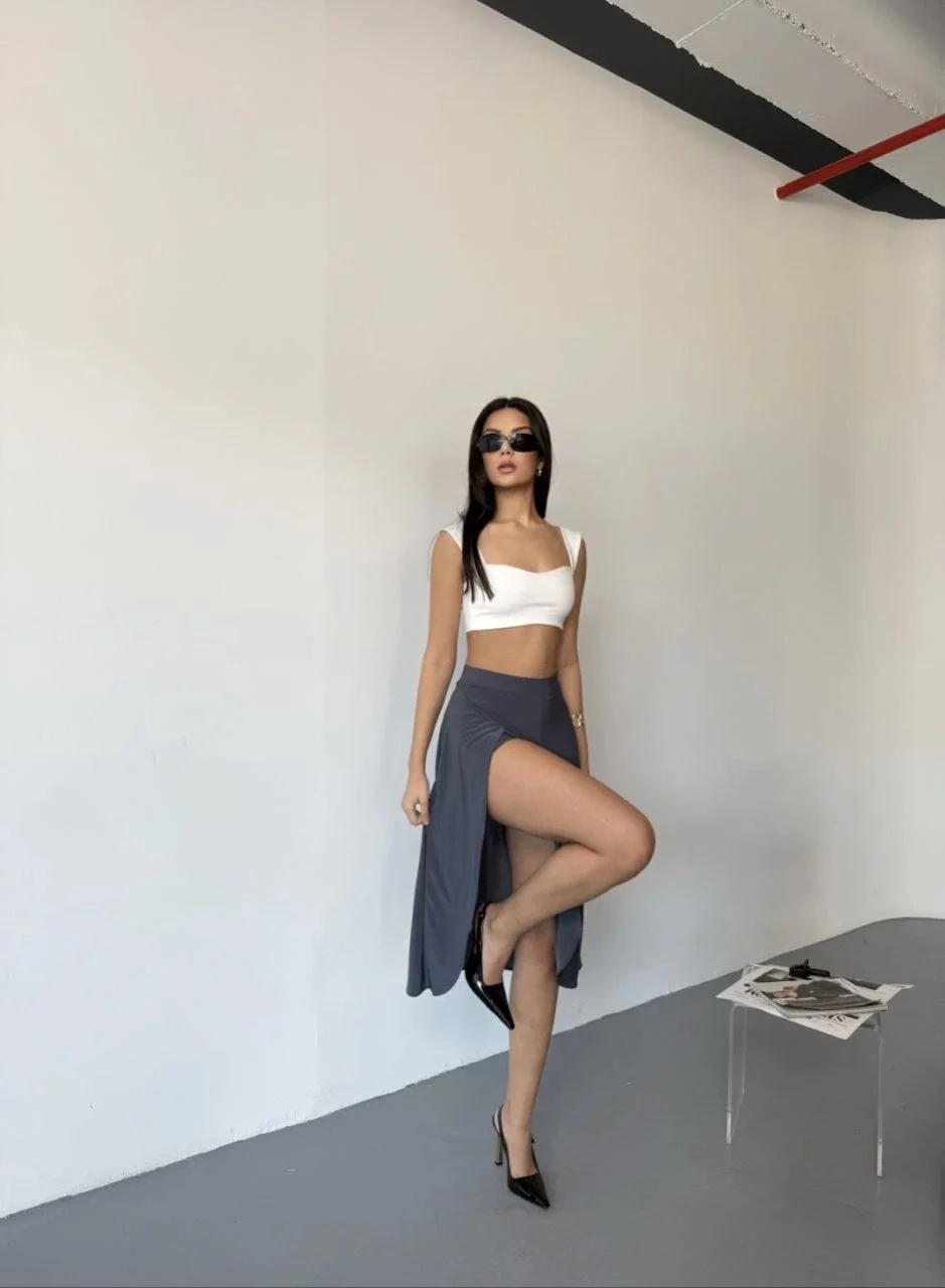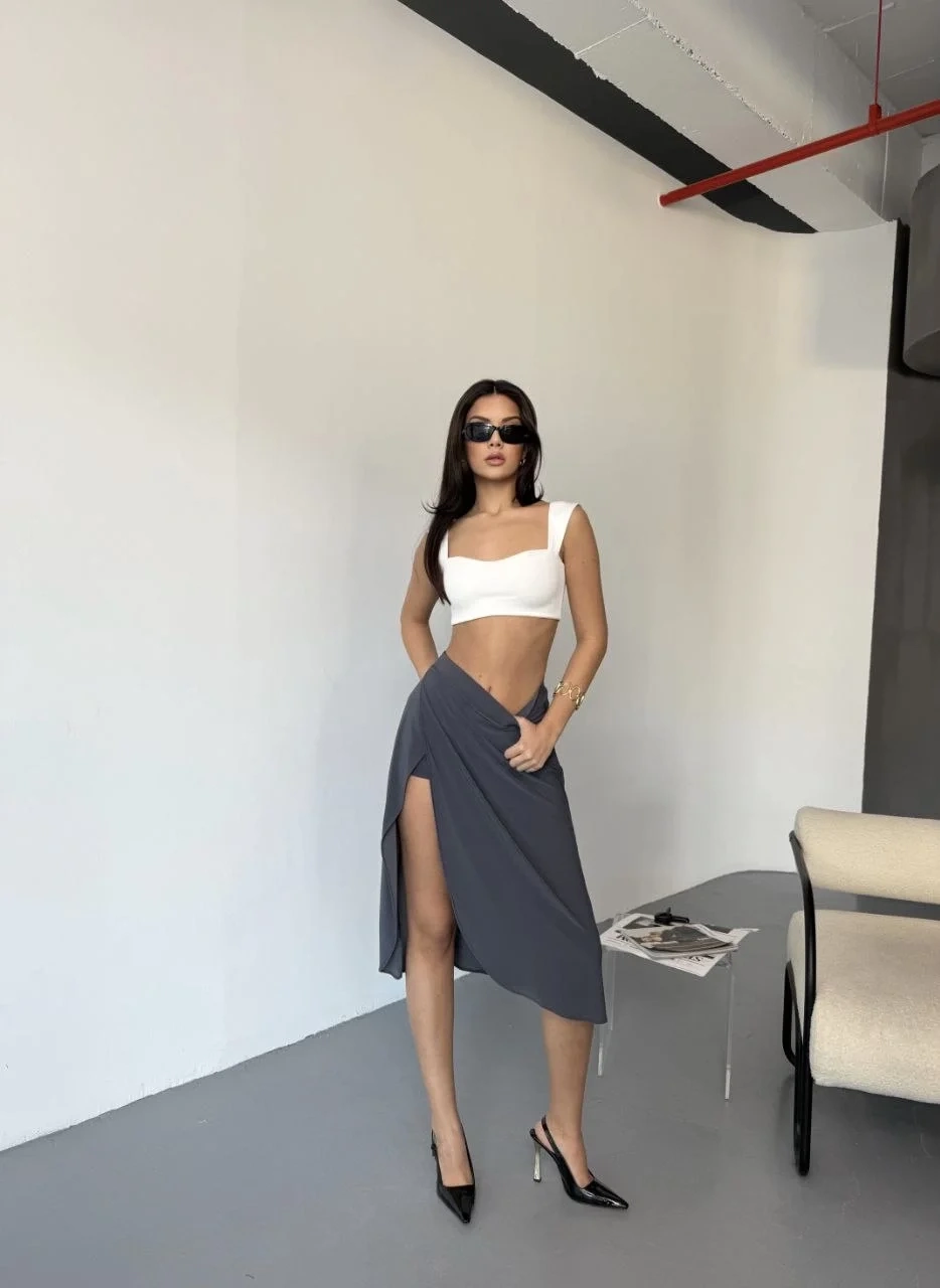 Cepli Şortlu Yırtmaçlı Etek - Siyah