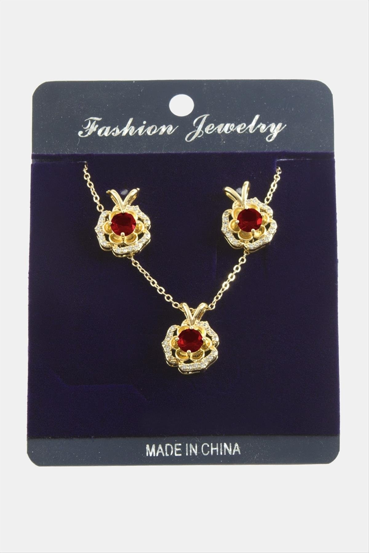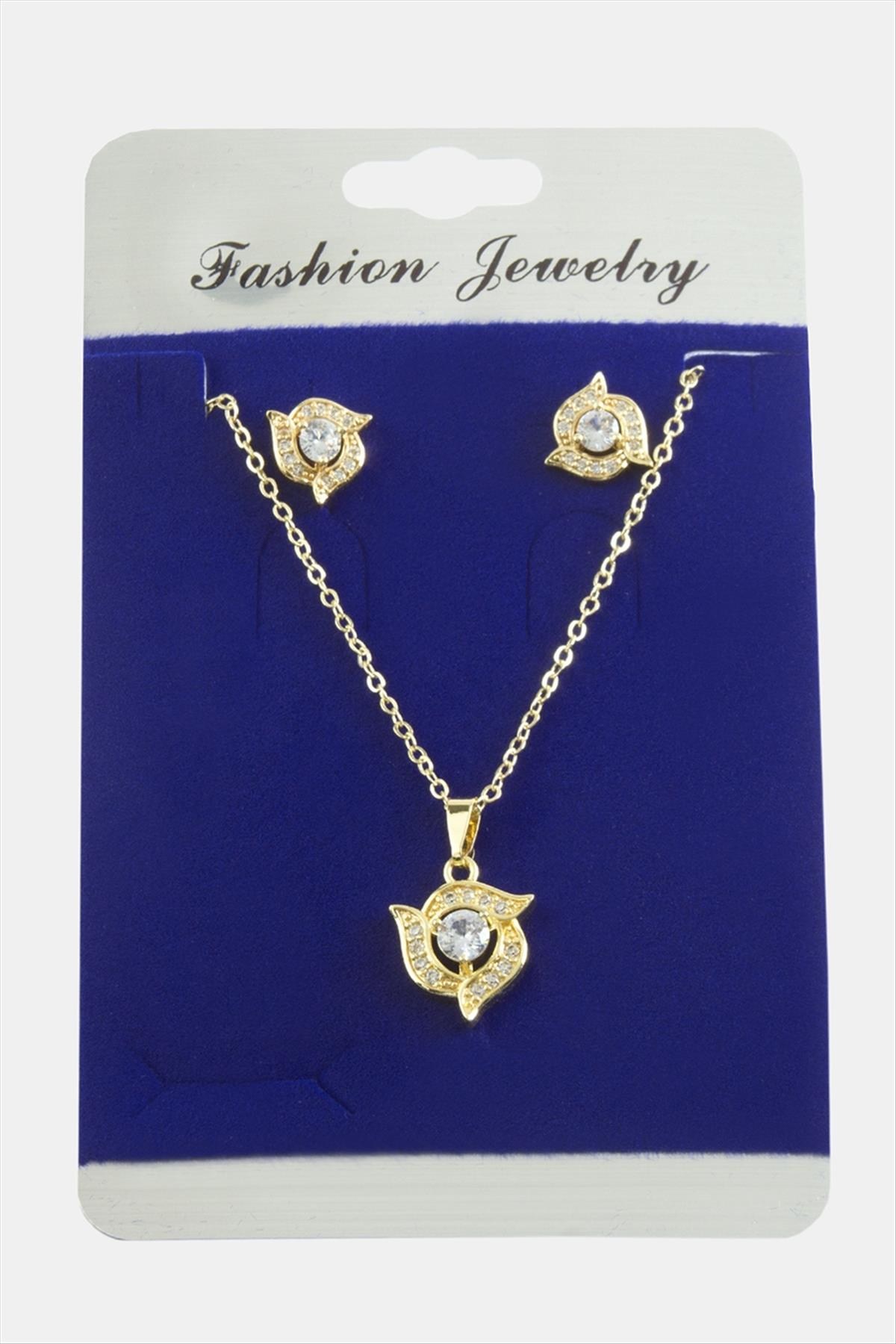 Çiçek Zirkon Taşlı Set Kolye