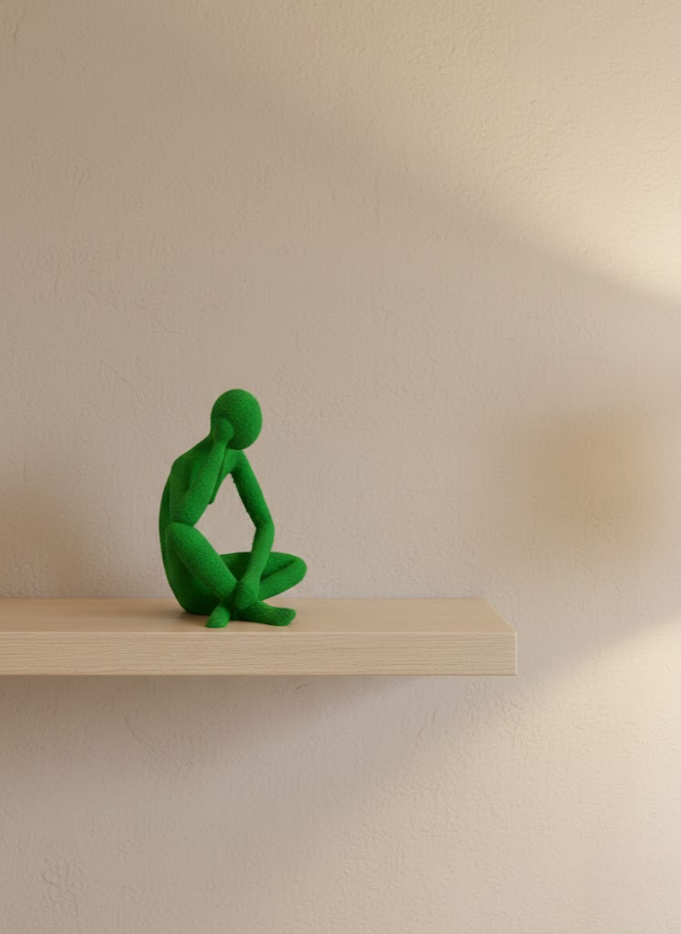 Dekoratif insan figürü, sade çizgileri ve özgün duruşuyla modern dekorasyon anlayışını yansıtır. Yeşil tonu sayesinde doğal ve enerjik bir görünüm sunar. 8×13 cm boyutu, ürünü hem tek başına hem de farklı dekoratif objelerle birlikte kullanmaya uygun hale getirir. Salon, ofis, kitaplık veya çalışma masası üzerinde dekorasyonu tamamlayan zarif bir detay olarak öne çıkar.