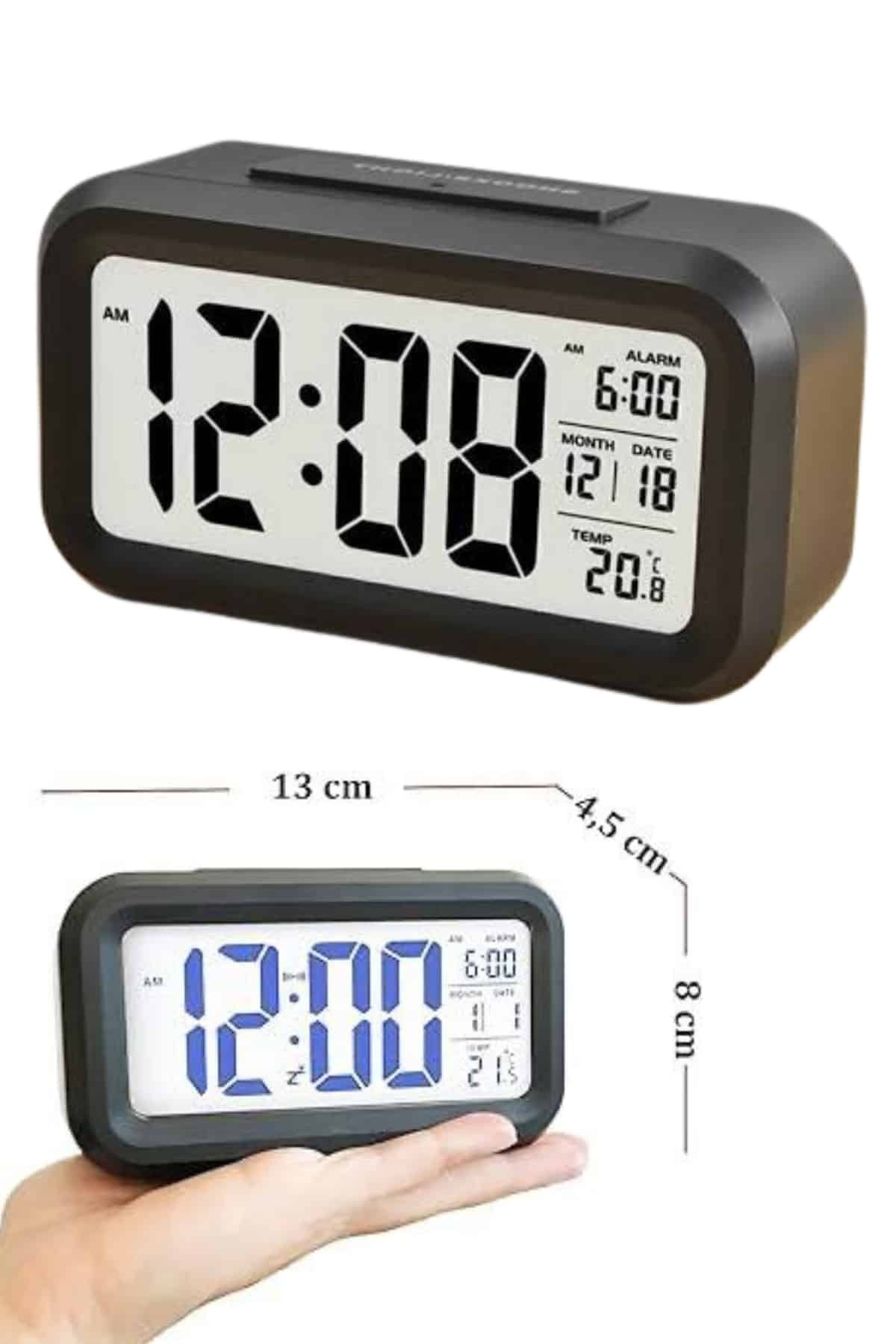 Pratik kullanımı ve şık tasarımıyla öne çıkan bu dijital masa saati, her anı planlamanıza yardımcı olmak için ideal bir çözümdür. Büyük LCD ekranı sayesinde saati, tarihi ve sıcaklık bilgilerini rahatlıkla takip edebilirsiniz. Kararmış ortamlarda dahi ekranın otomatik olarak aydınlanması, saatin her koşulda net bir şekilde görünmesini sağlar. 6 saniye sonra kendiliğinden sönen ışık özelliği, gözlerinizi rahatsız etmeden enerji tasarrufu sağlar. Alarm fonksiyonu sayesinde sabahları rahatça uyanabilir, güne dinç başlayabilirsiniz. Ayrıca, tarih ve ortam sıcaklığı bilgilerini aynı anda görüntüleyebilmeniz, günlük planlamanızı kolaylaştırır. Kompakt ve şık tasarımı, ofis veya ev ortamında rahatlıkla kullanılmasını sağlar. Ürün ölçüleri 4,3 x 15,1 x 7,7 cm olup, 3 adet AA pil ile çalışır (piller dahil değildir). Paket içeriğinde bir adet dijital masa saati bulunmaktadır. Hem estetik hem de fonksiyonel özellikleri ile hayatınıza pratiklik katacak bu saat, günlük kullanım için mükemmel bir tercihtir.
