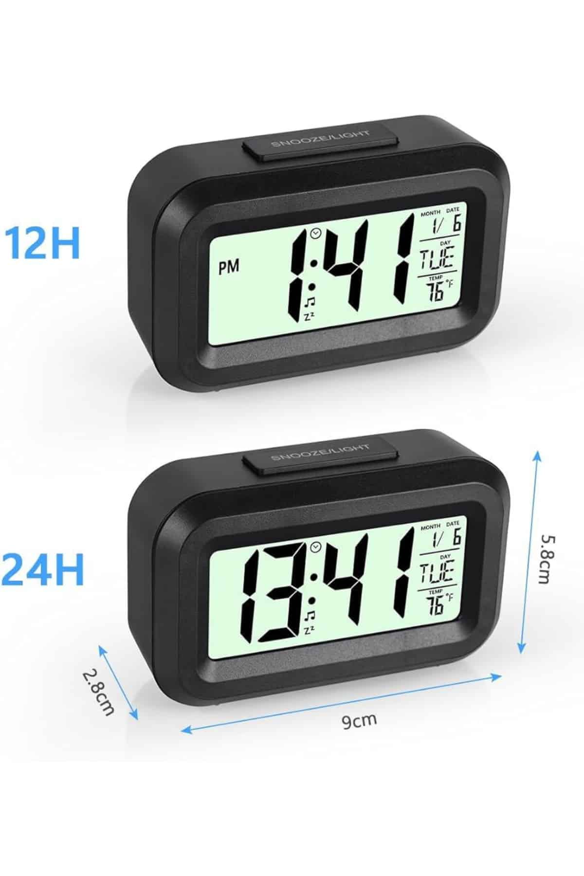 Şık ve kullanışlı tasarımıyla öne çıkan bu dijital masa saati, modern yaşam alanları için hem dekoratif hem de işlevsel bir çözüm sunar. Geniş dijital ekranı sayesinde saati, tarihi ve ortam sıcaklığını kolaylıkla görebilir; özellikle düşük ışıklı ortamlarda dahi ekranı net bir şekilde takip edebilirsiniz. Otomatik ışık sensörü sayesinde karanlıkta ekran kendiliğinden aydınlanır ve bu özellik gerektiğinde manuel olarak da aktive edilebilir. Aydınlatma sistemi, kısa süreli yanarak gereksiz enerji tüketiminin önüne geçer ve göz yormayan bir kullanım sağlar. Alarmlı yapısıyla sabahları zamanında uyanmanıza yardımcı olan bu saat, aynı zamanda tarih ve derece göstergeleriyle de gün boyu ihtiyacınız olan temel bilgileri sunar. Kompakt ölçüleri sayesinde çalışma masanızda, baş ucunuzda ya da ofis ortamında rahatlıkla yer bulabilir. Ayrıca sessiz çalışmasıyla gece boyunca rahatsızlık vermez. Ürün 4,3 x 15,1 x 7,7 cm boyutlarındadır ve 3 adet AA pil ile çalışır (piller dahil değildir). Kutusunda 1 adet fotoselli dijital masa saati bulunmaktadır. Pratikliği ve modern görünümüyle hem ev hem ofis kullanımı için ideal bir yardımcıdır.