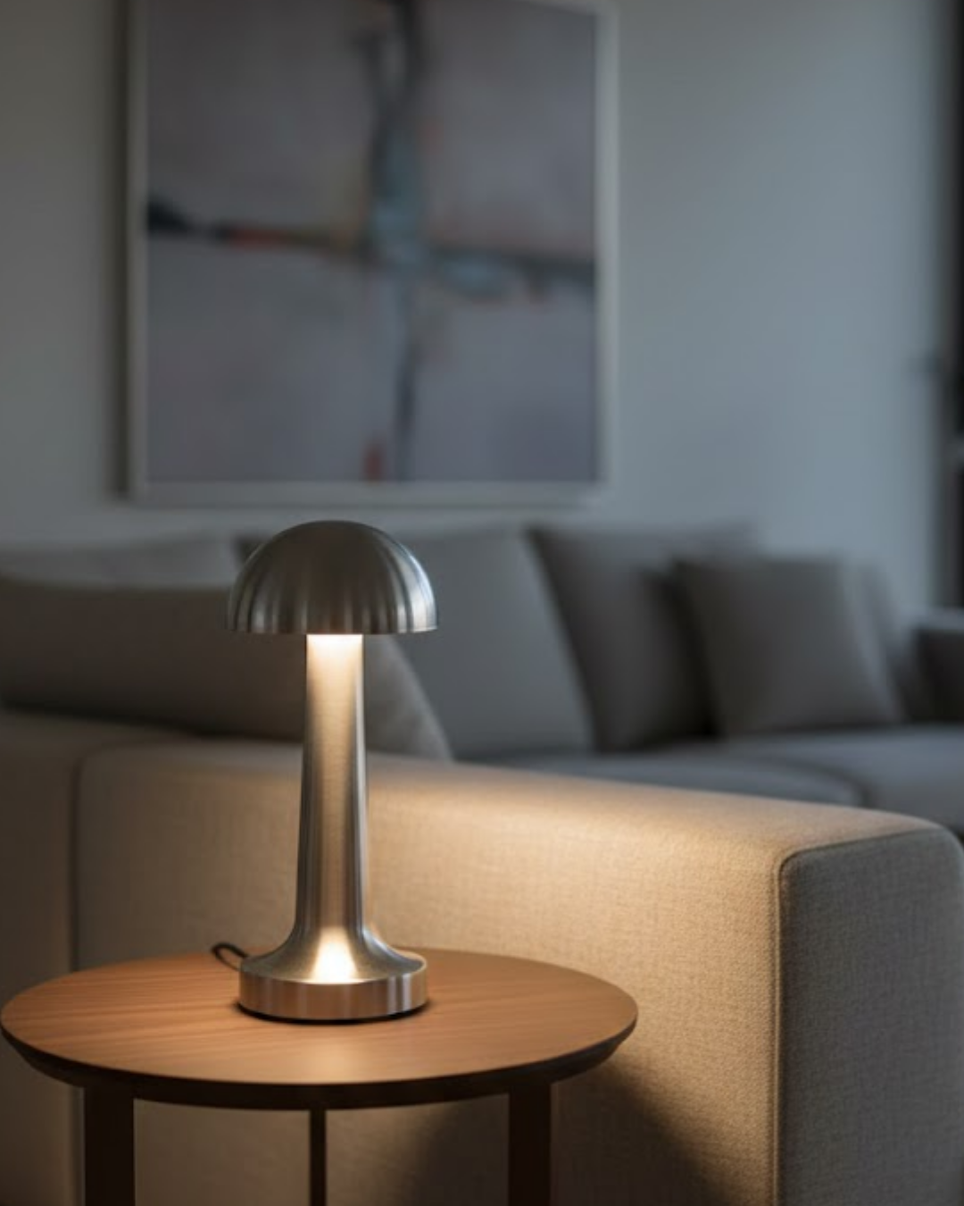 Dokunmatik Mantar Masa Lambası 3 Modlu Işık Şarjlı Kablosuz LED Krom Gövde