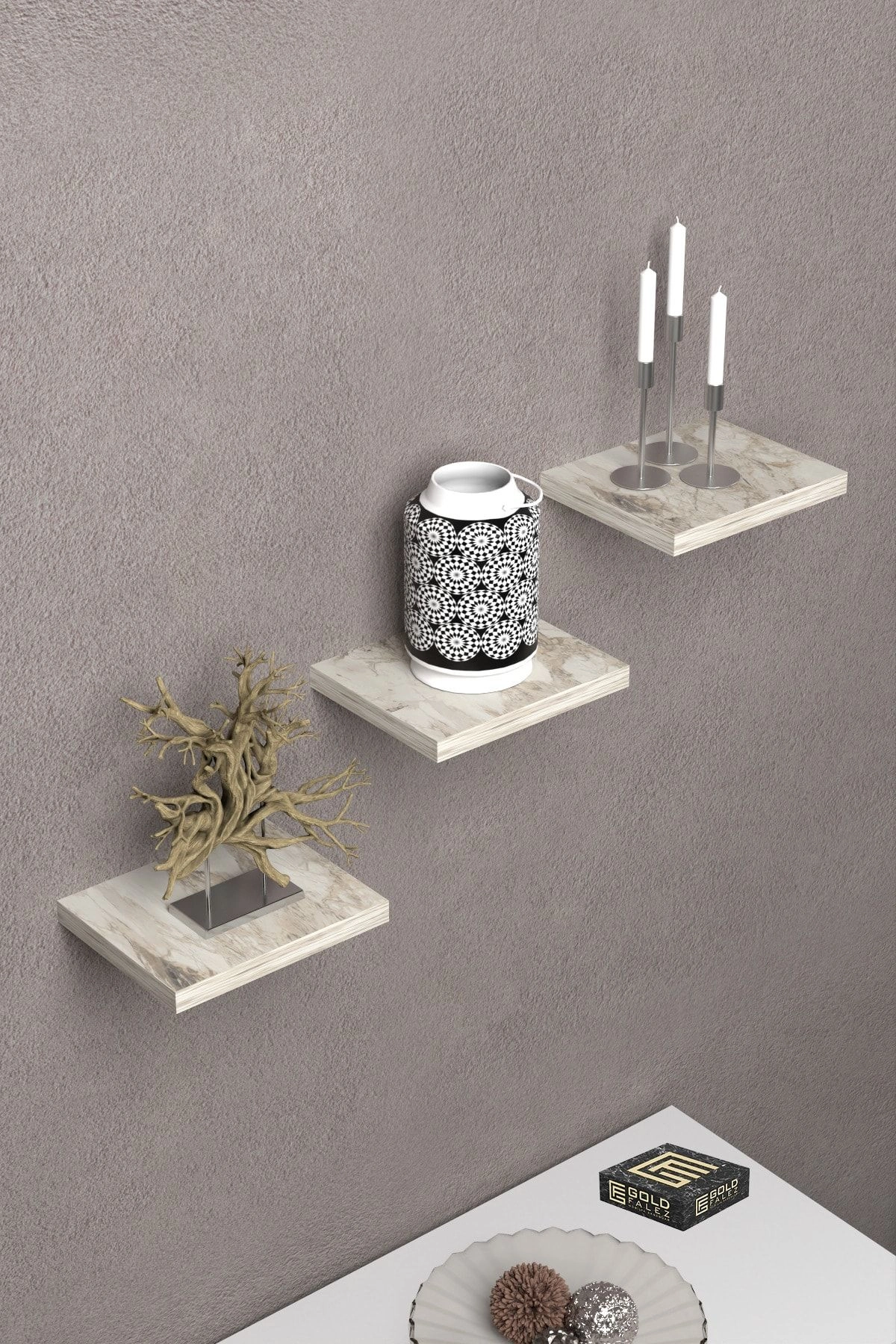 Duvar Rafı Dekoratif 3 Adet Çiçeklik Kare Efes