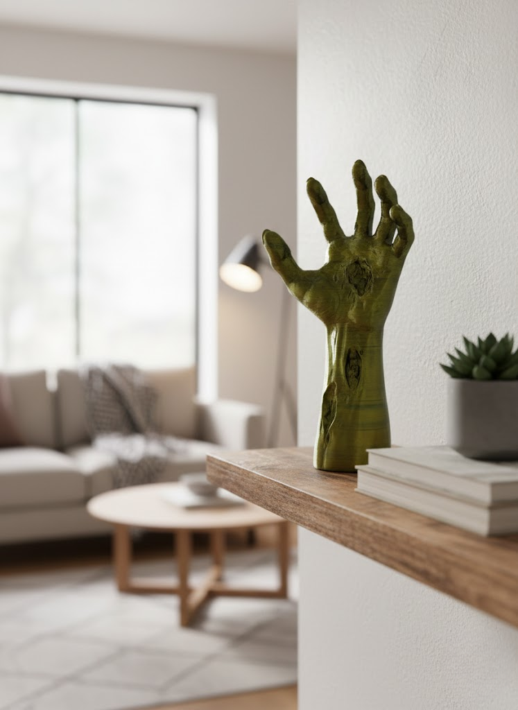 Altın ve yeşil tonlarının birleştiği bu özel el figürü, dekoratif objeler arasında özgün tasarımıyla öne çıkar. 22×7 cm boyutu, masaüstü dekorasyonlar için ideal ölçüdedir. Ürün, parmakların yukarı açık şekilde tasarlanmış formuyla adeta bir hareket anını donduruyormuş gibi görünür. Bu detay, heykelin enerjik ve canlı bir karakter kazanmasını sağlar. El figürleri; koruma, iletişim, üretkenlik ve ruhsal enerji gibi anlamlar taşıdığı için hem modern hem mistik dekorasyonlarda sıkça kullanılır. Bu heykel, evinizde veya ofisinizde dikkat çekici bir odak noktası oluşturur. Raf, vitrin, sehpa veya çalışma köşelerinde sergilendiğinde hem şık hem de sanatsal bir duruş sergiler. Koleksiyon ürünleri sevenlere, fantastik dekor meraklılarına, modern sanat objeleri toplayanlara ve eşsiz hediye arayanlara hitap eden özel bir parçadır. Yüzey dokusundaki detaylar, ışığı yansıtma biçimi ve renk tonlarıyla bulunduğu ortamın dekorasyonuna güçlü bir tarz katar.