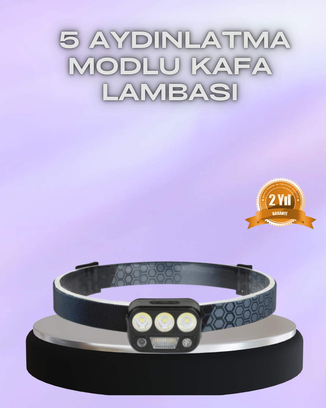 El Hareket Sensörlü LED Kafa Feneri 5 Mod Ayarlanabilir