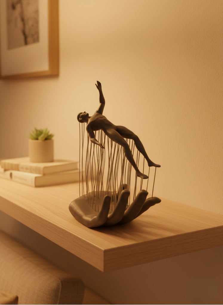 El İnsan Figürü Gri, soyut insan formu ve el detayıyla estetik ve anlamı bir araya getirir. Modern salon dekorasyonuna uyum sağlayan gri tonları sayesinde zamansız bir görünüm sunar. Raf üstü, TV ünitesi veya kitaplık dekorasyonunda tek başına ya da diğer dekoratif objelerle kombinlenebilir. Sanatsal ve minimalist dekorasyon tarzını benimseyenler için özel bir parçadır.