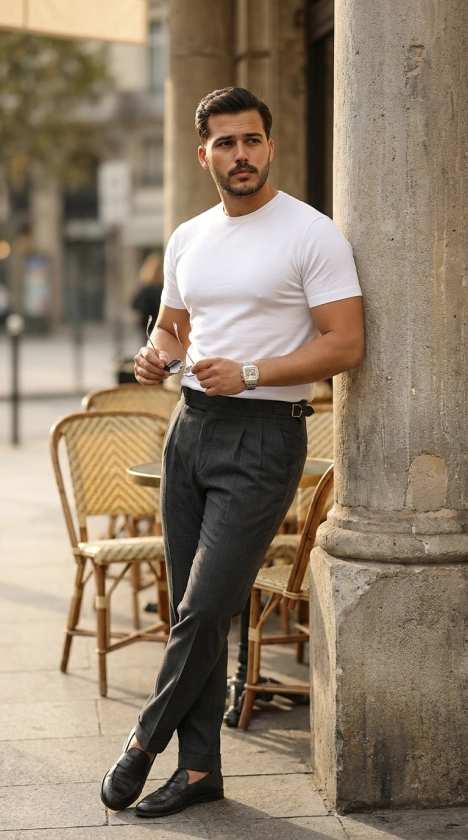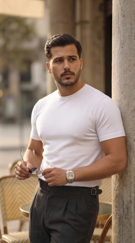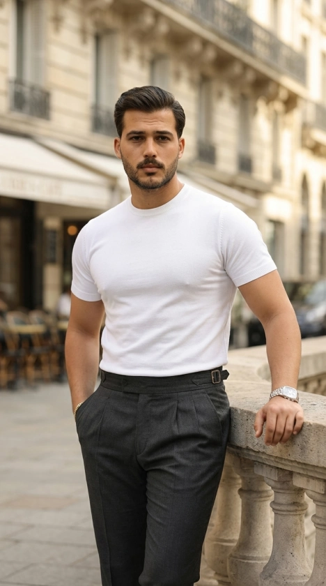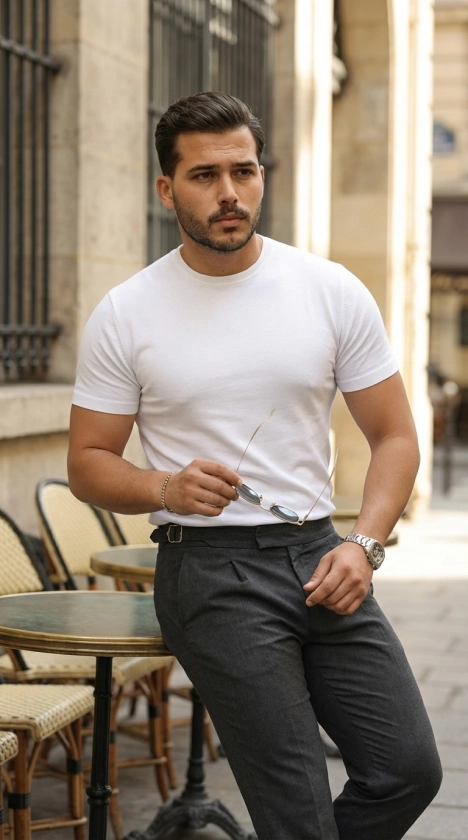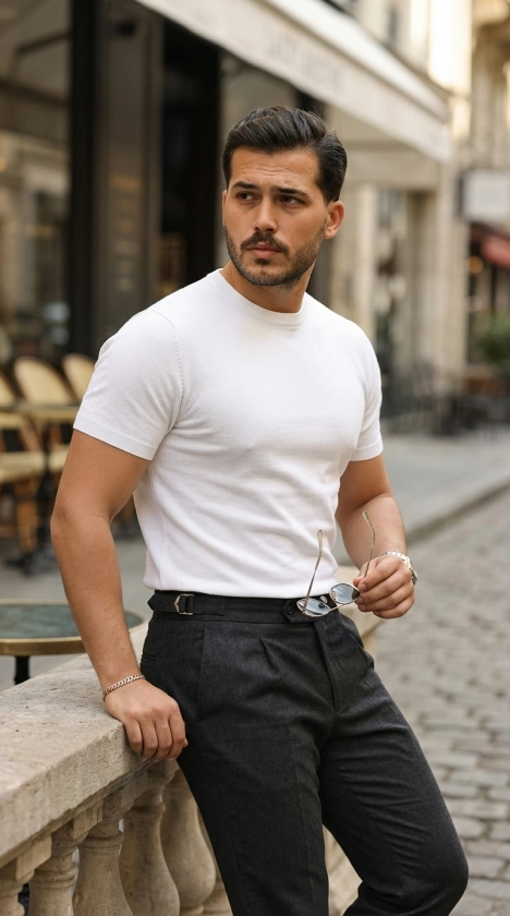 Erkek Basic Bisiklet Yaka Kısa Kollu Triko Tişört - %100 Pamuk Akrilik