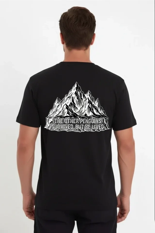 Erkek Nihilist Penguen Temalı Oversize Bisiklet Yaka Tişört - Siyah