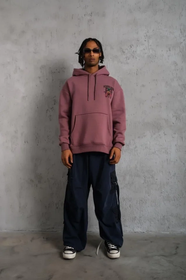 Erkek SCHOOL BOY Baskılı Kapüşonlu Sweat - Gül Kurusu