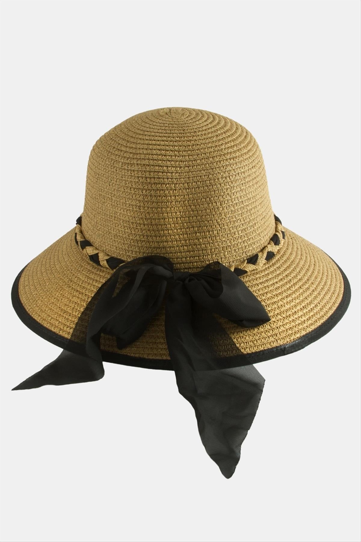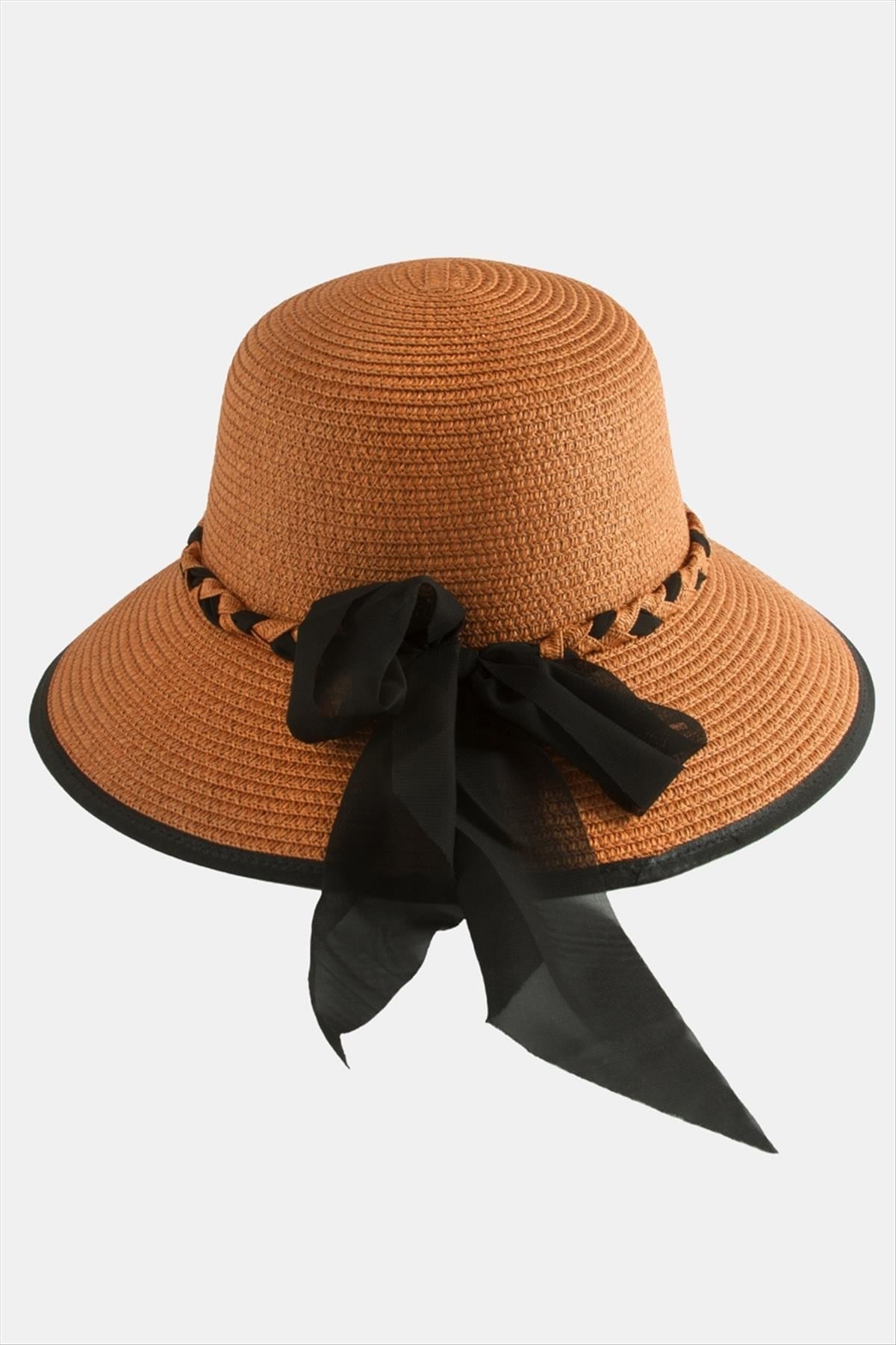 Hasır Şapka;Ürün malzemesi şifon ve hasır malzemeden üretilmiştir. Hasır plaj şapkası çapı 31 cm, şapka iç çapı 19 cm ve yüksekliği 15 cmdir. Ürün 360 derece siperlidir. Ürün kafa çapı etrafı 58 cmdir. İçersinde ayarlamak için ip bulunur.