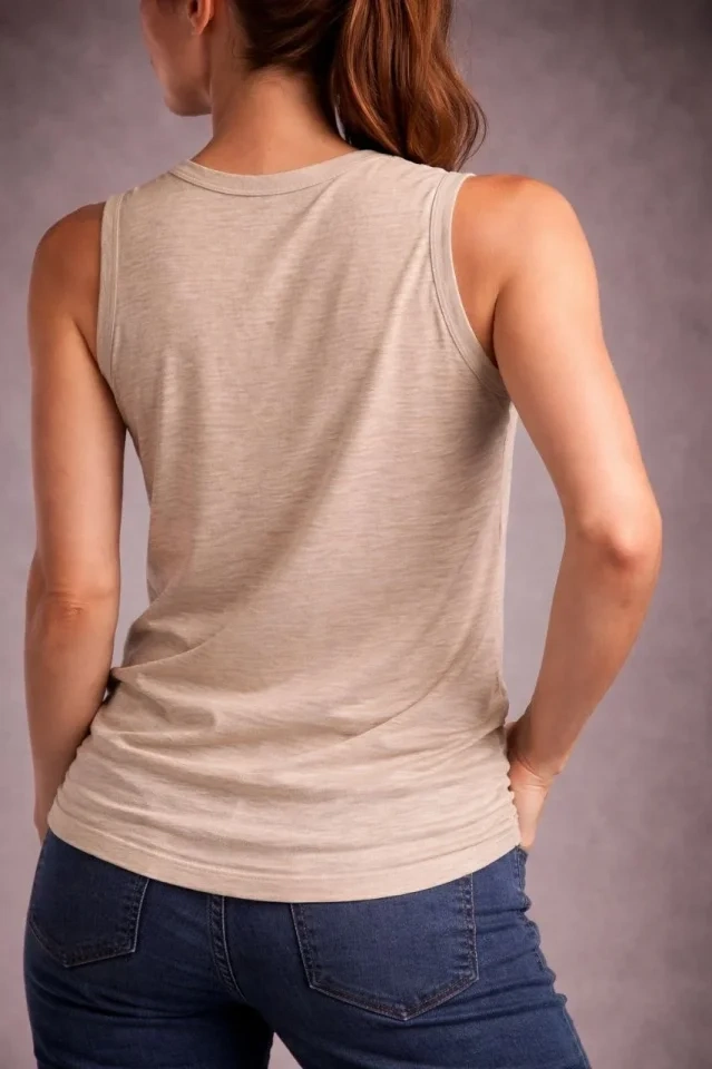 Flamlı Kumaş Sıfır Kolsuz Atlet Basic Spor Üst, Günlük Ve Fitness Kullanımına Uygun - Taş