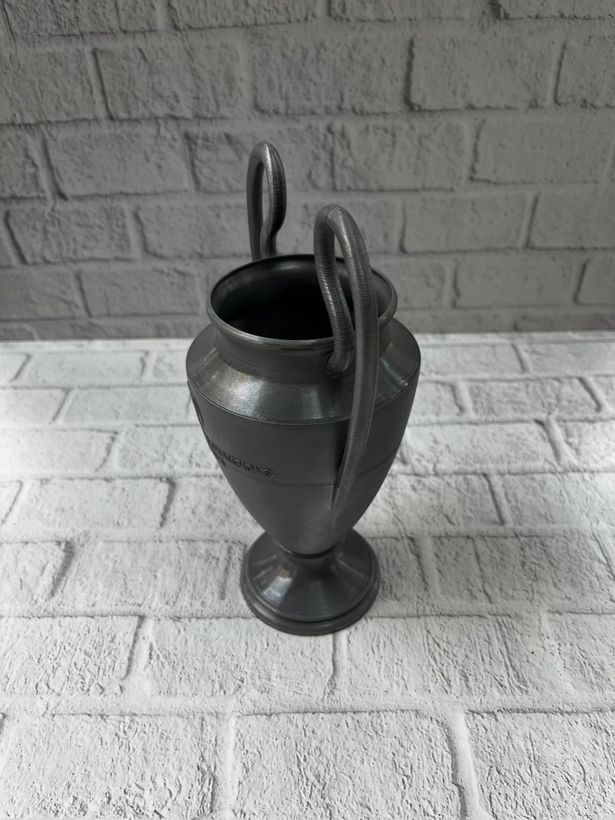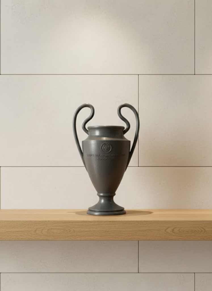 UEFA model esintili Füme Kupa 25 cm, minimal renk tonu ve zarif formuyla spor atmosferini dekorasyona taşıyan özel bir üründür. Hem klasik hem modern ortamlara uyum sağlayabilen tasarımıyla dikkat çeker. Kupayı tanımlayan uzun kulplar ve gövde üzerindeki kabartma detaylar, ürünün gerçekçi ve koleksiyonluk bir değer taşımasını sağlar. Çalışma masasında motivasyon simgesi, vitrinlerde koleksiyon ürünü, spor temalı etkinliklerde sembolik ödül olarak kullanılabilir. Şık görünümü sayesinde hem kadın hem erkek kullanıcılara hitap eder. Ev dekorasyonu için güçlü bir tamamlayıcı objedir.